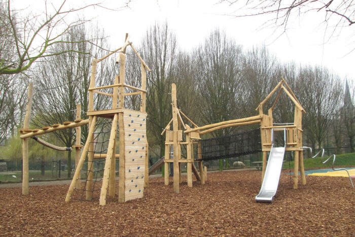 In de voormalige tuinen van Kasteel Born is dierenpark Kasteelpark Born te vinden. In dit park kun je heerlijk wandelen en tegelijkertijd van de dieren en de natuur genieten. Op zo een mooie plek mag een toffe speeltuin natuurlijk niet ontbreken! Er is dan ook een speelplek te vinden met een tof klimtoestel waarbij je je als een aapje in een boom voelt. Het speeltoestel is gemaakt van Robinia hout, wat mooi aansluit op de natuurlijk omgeving. Meer over dit project lees je hier.