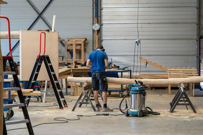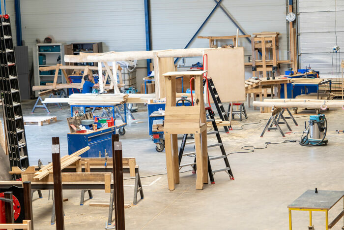 Als we Frank vragen wat de grootste uitdagingen zijn waarmee hij tijdens zijn werkzaamheden te maken krijgt, geeft hij aan dat het maken van speeltoestellen een geheel andere tak van sport is. ‘’Ondanks mijn achtergrond als meubelmaker moest ik alles vanaf scratch leren van mijn collega’s’’, geeft Frank aan. ‘’Speeltoestellen zijn veel groter en zwaarder dan meubels, dus je kunt niet zomaar je werk omdraaien en aan de andere kant verder gaan. Hier komt een heftruck en veel focus en tijd bij kijken.’’