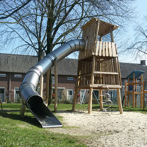 Wanneer een opdrachtgever ons benadert om een project voor hen uit te voeren – dit kan het vervangen van een bestaand speeltoestel zijn, of het inrichten van een geheel nieuwe speelplek – dan vragen wij eerst of zij nog ergens oude speeltoestellen of onderdelen daarvan opgeslagen hebben. Vooral gemeenten hebben vaak een opslag van oud materiaal dat nog prima een tweede leven kan krijgen, maar zelf hebben zij hier vaak geen idee van. Als wij hen dan vertellen dat die RVS glijbaan nog prima verwerkt kan worden in een nieuwe speeltoren, dan zijn zij vaak positief verrast.