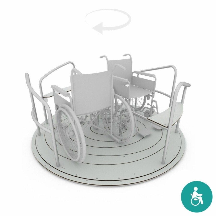 Sneller, trager, met of zonder rolstoel? Op deze carrousel beleef je oneindig veel speelplezier. Pas je op dat je niet uit evenwicht raakt als je stopt met draaien?