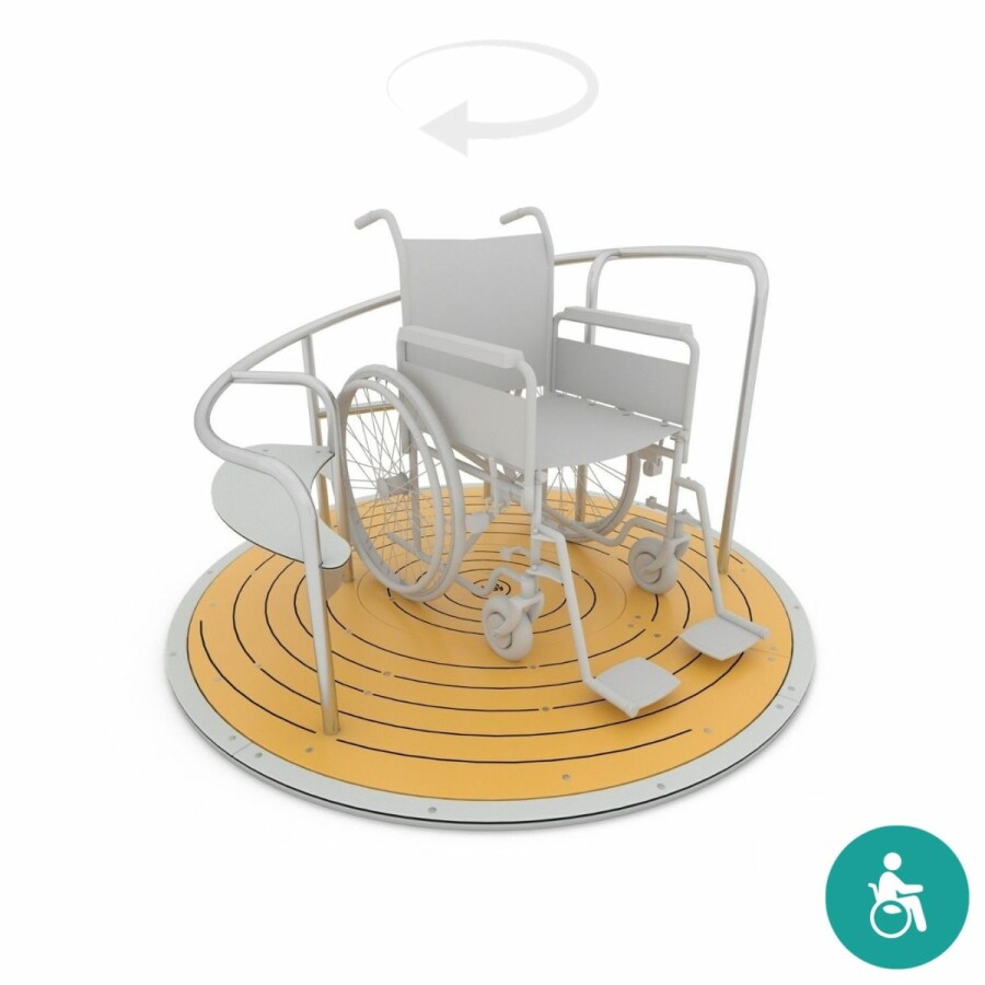 Sneller, trager, met of zonder rolstoel? Op deze carrousel beleef je oneindig veel speelplezier. Pas je op dat je niet uit evenwicht raakt als je stopt met draaien?