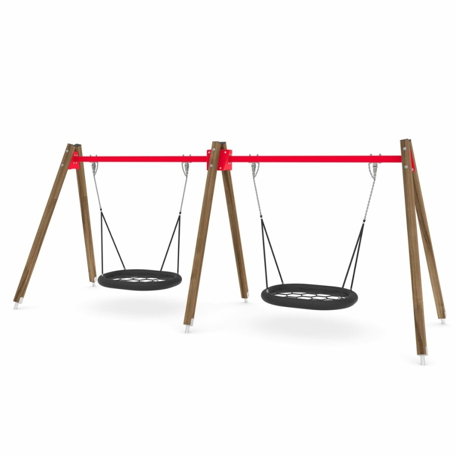 De schommel kan uitgevoerd worden met andere schommelzitjes en andere kleuren bovenbalken.