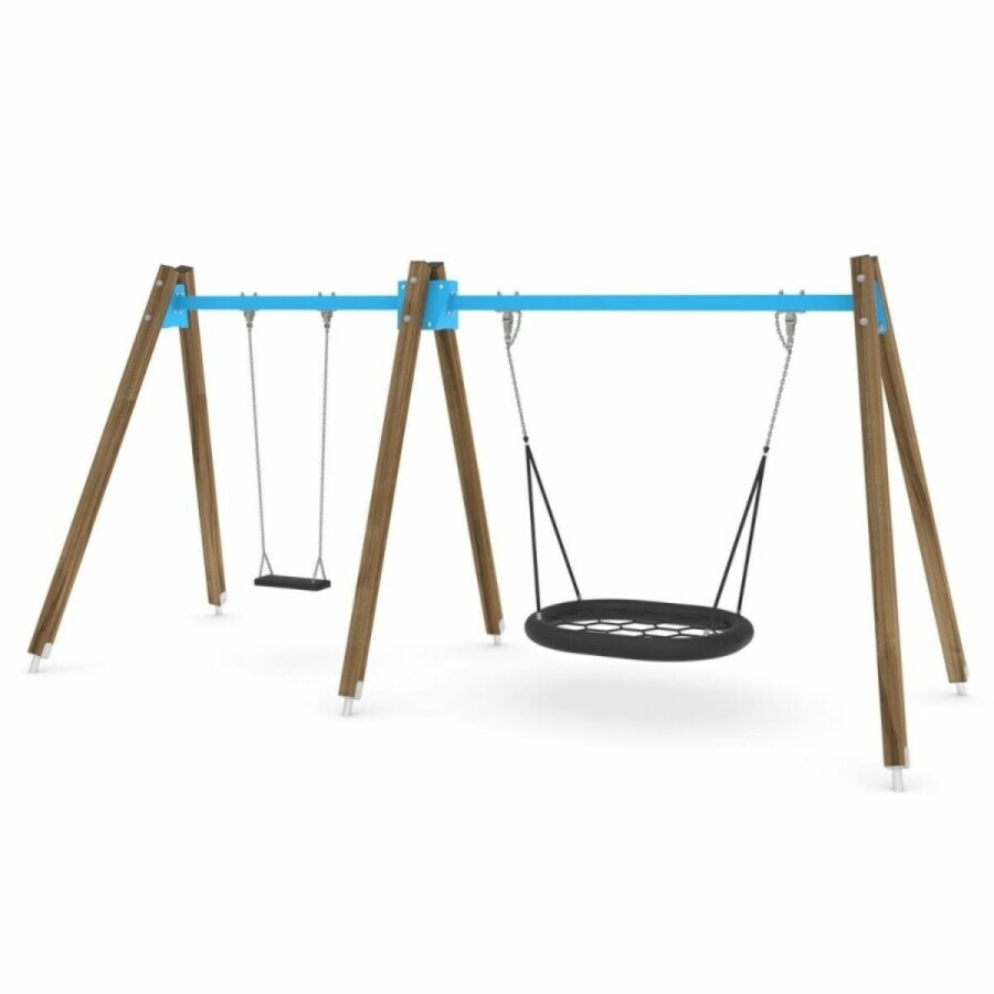 De schommel kan uitgevoerd worden met andere schommelzitjes en andere kleuren bovenbalken.