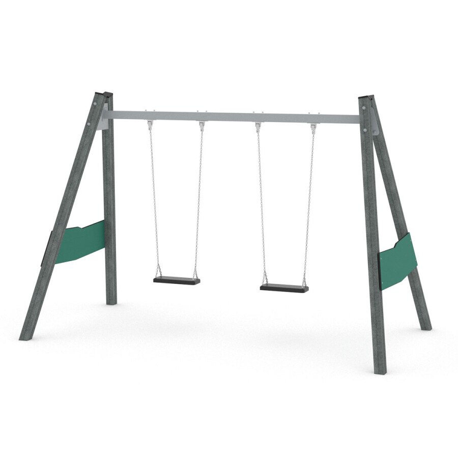 De schommel kan uitgevoerd worden met andere schommelzitjes en andere kleuren bovenbalken.