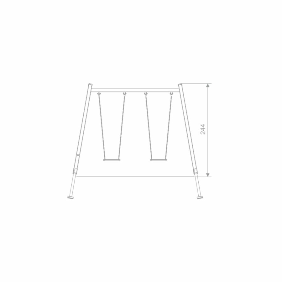 De schommel kan uitgevoerd worden met andere schommelzitjes en andere kleuren bovenbalken.