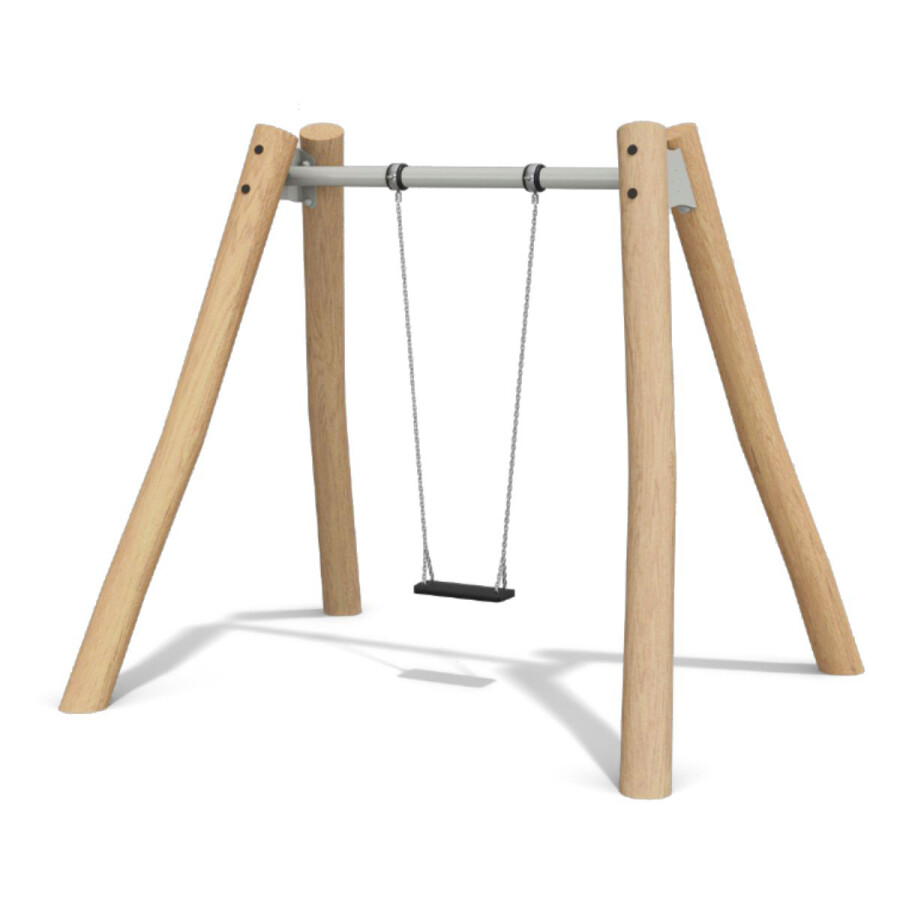 Een klassiek toestel dat niet mag ontbreken in een speeltuin. Deze schommel is uitgevoerd met een metalen bovenbalk met een anti-wrap systeem. Dit systeem zorgt ervoor dat de beide schommelkettingen niet om de bovenbalk kunnen draaien.