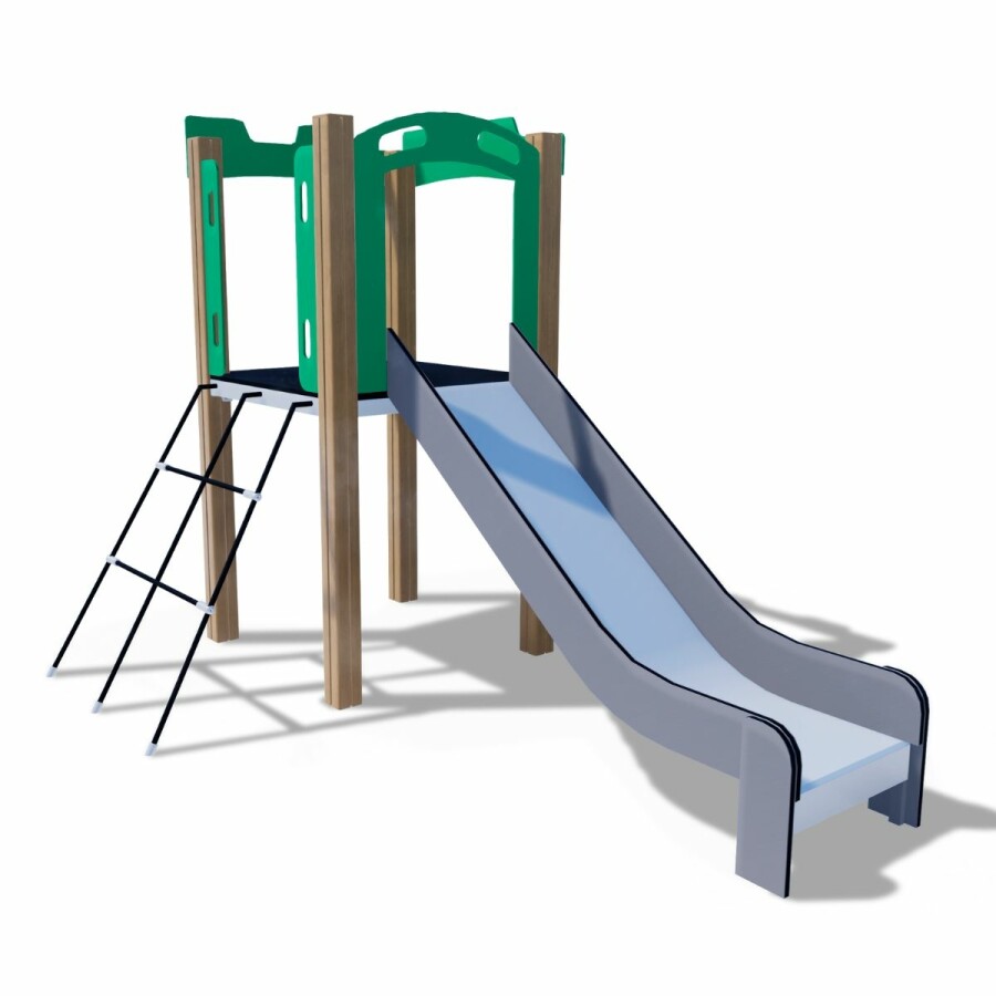 Dit speeltoestel produceren we standaard met een stalen onderbouw.