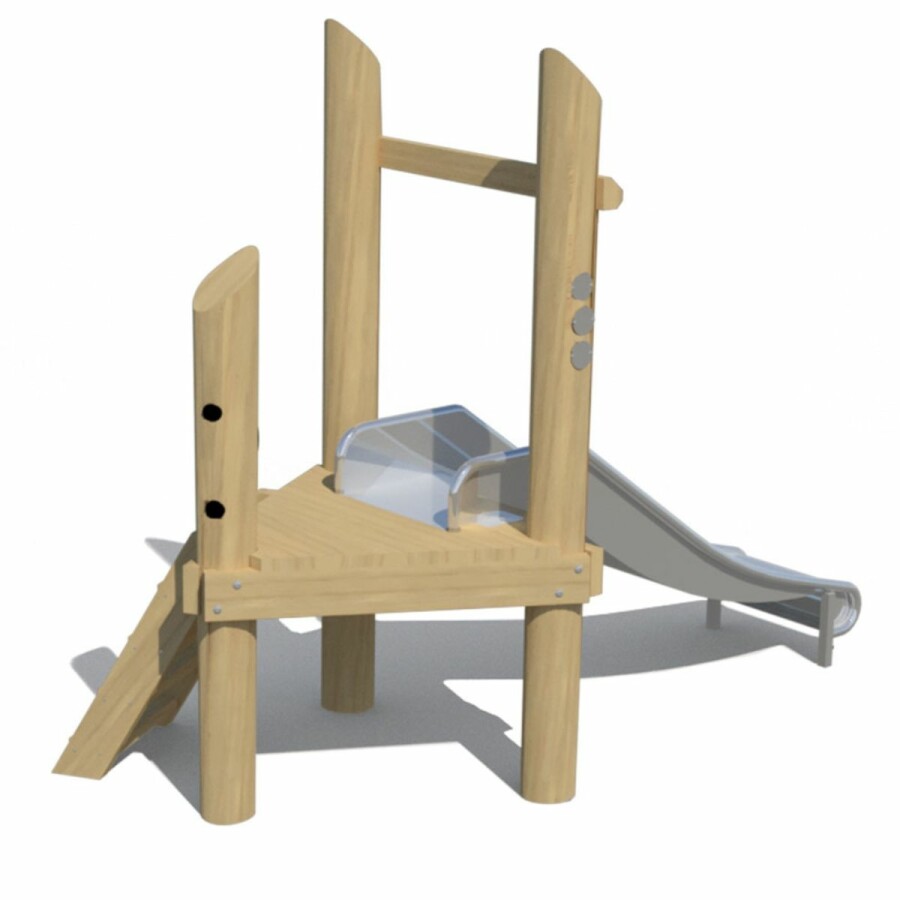 De basistoren bestaat uit een vlonder en een glijbaan. De glijbaan is van verzinkt metaal met RVS glijvlak.