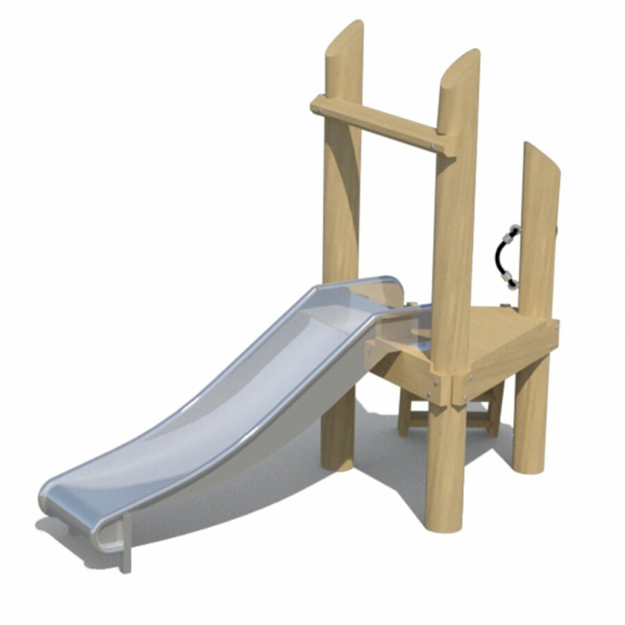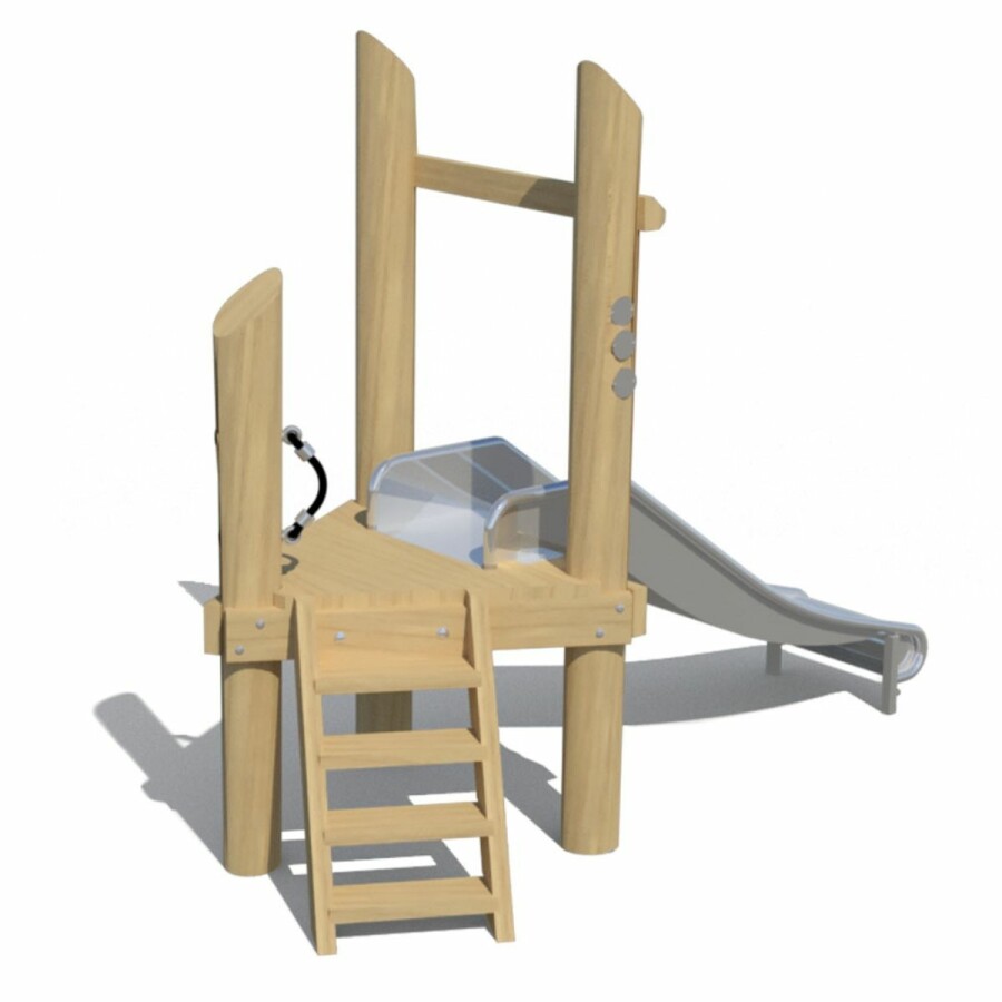De basistoren bestaat uit een vlonder en een glijbaan. De glijbaan is van verzinkt metaal met RVS glijvlak.