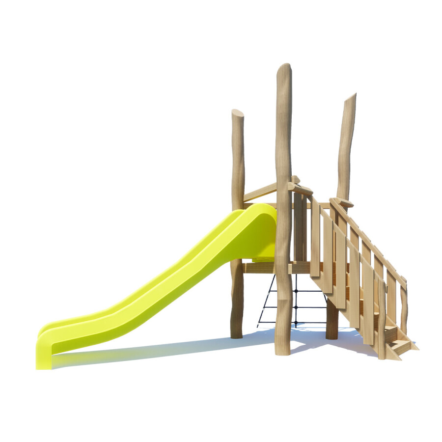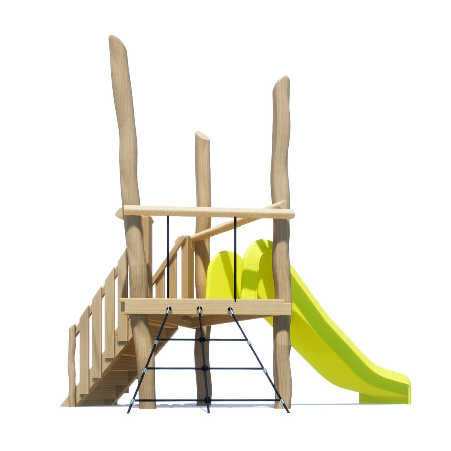 Deze glijbaantoren bevat een vaste trap, waardoor dit toestel uitermate geschikt is voor de jongere doelgroep.