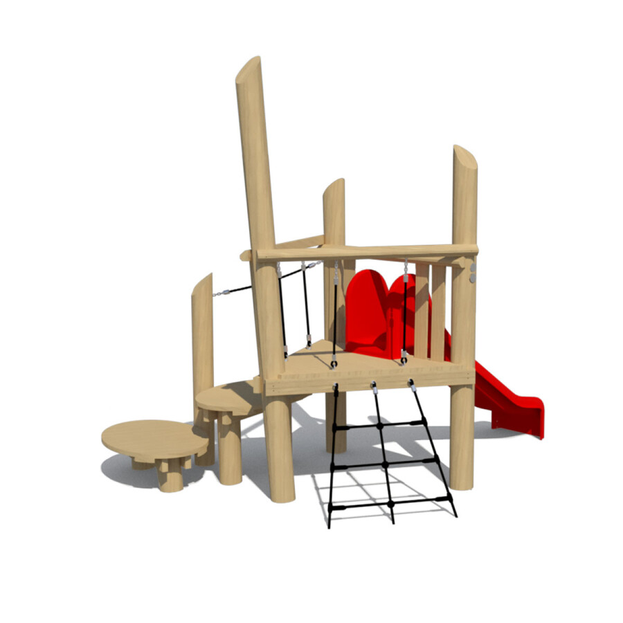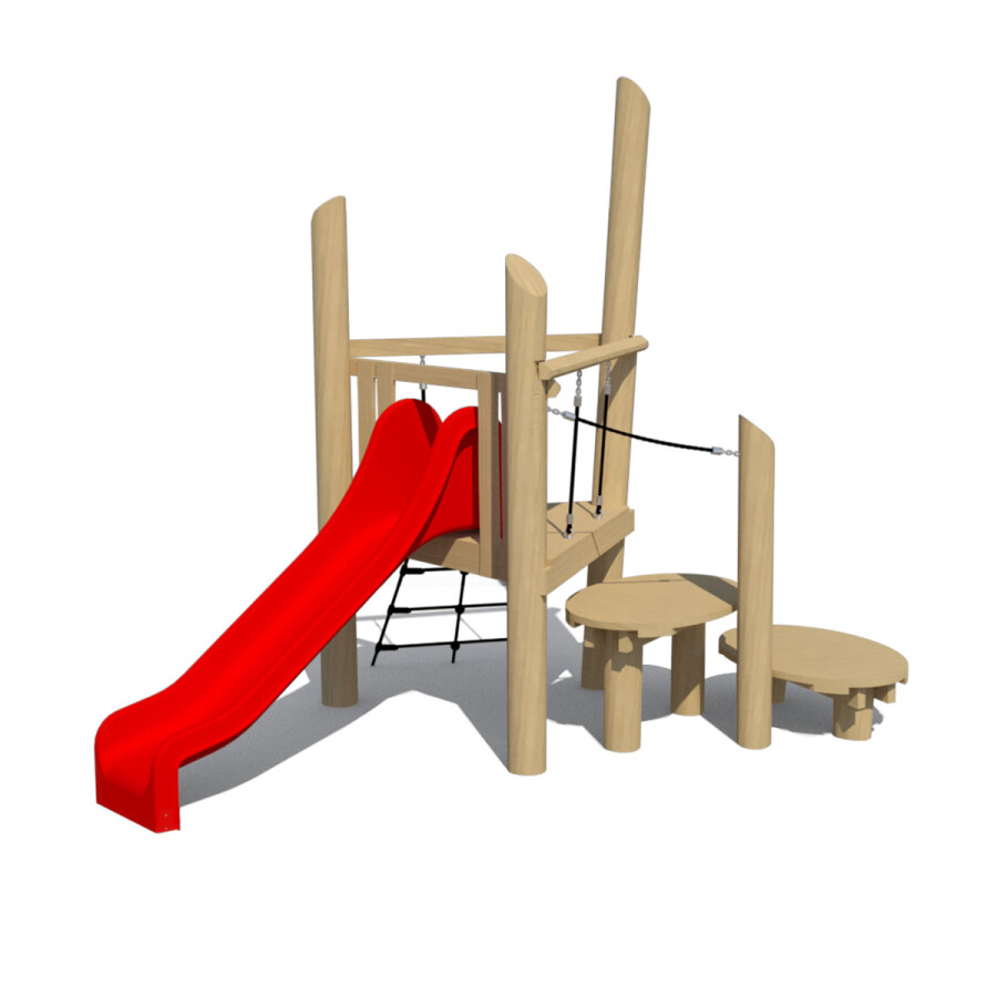 Deze glijbaantoren bevat kruipplateau's, waardoor dit toestel uitermate geschikt is voor de jongere doelgroep.