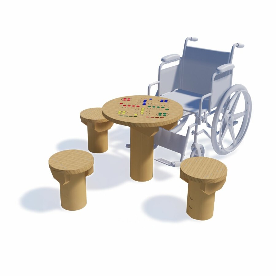 Breng gezelligheid en speelplezier naar een hoge niveau met onze speeltafel. Deze tafel is voorzien van het klassieke 'Mens Erger Je Niet' op de bovenzijde en bevat drie krukjes én een open plek die perfect geschikt is voor een rolstoelgebruiker.