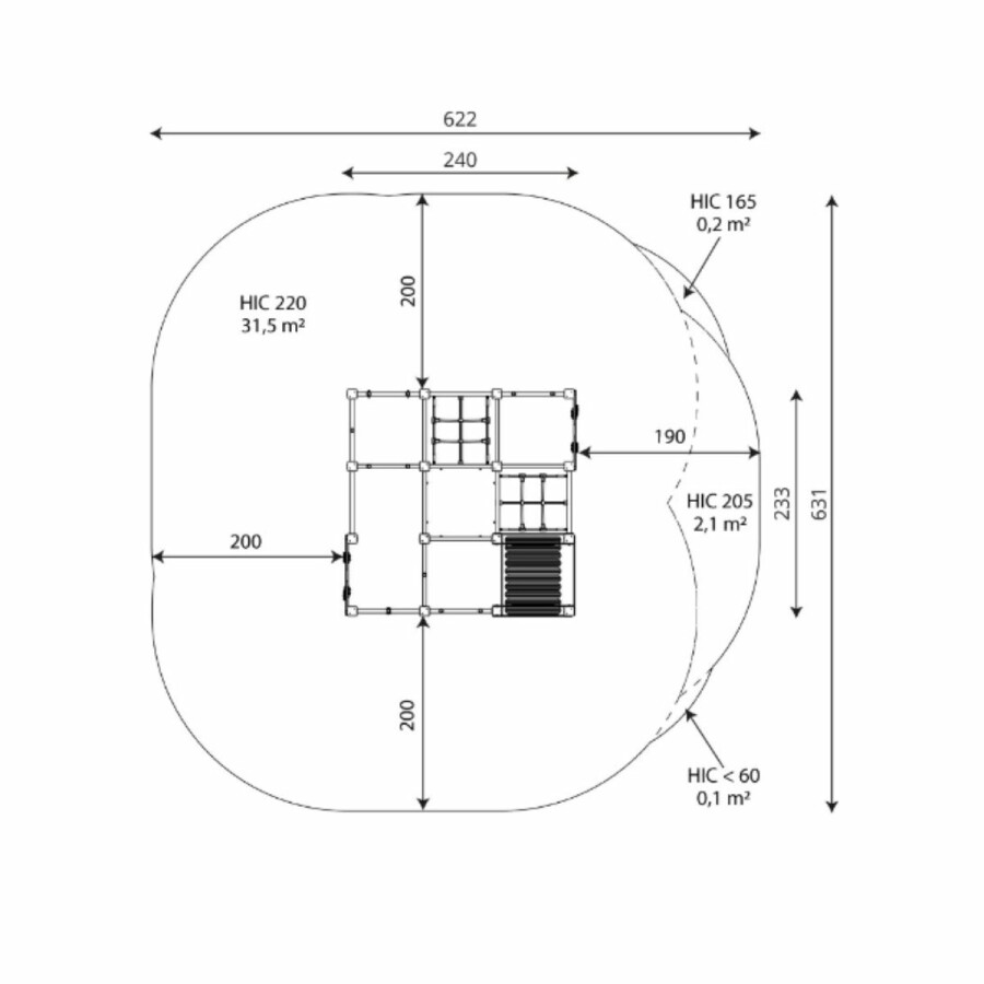 | Opvangzone | 6,4 x 6,3 m |