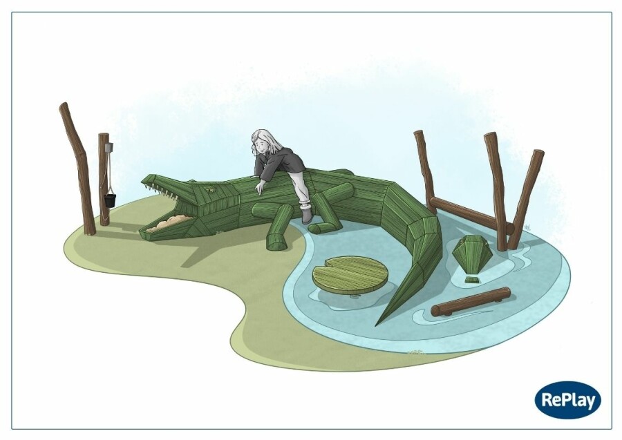 Klim op deze levensgrote krokodil en ga op jacht naar een lekker hapje. Pas je op dat hij je niet op eet?