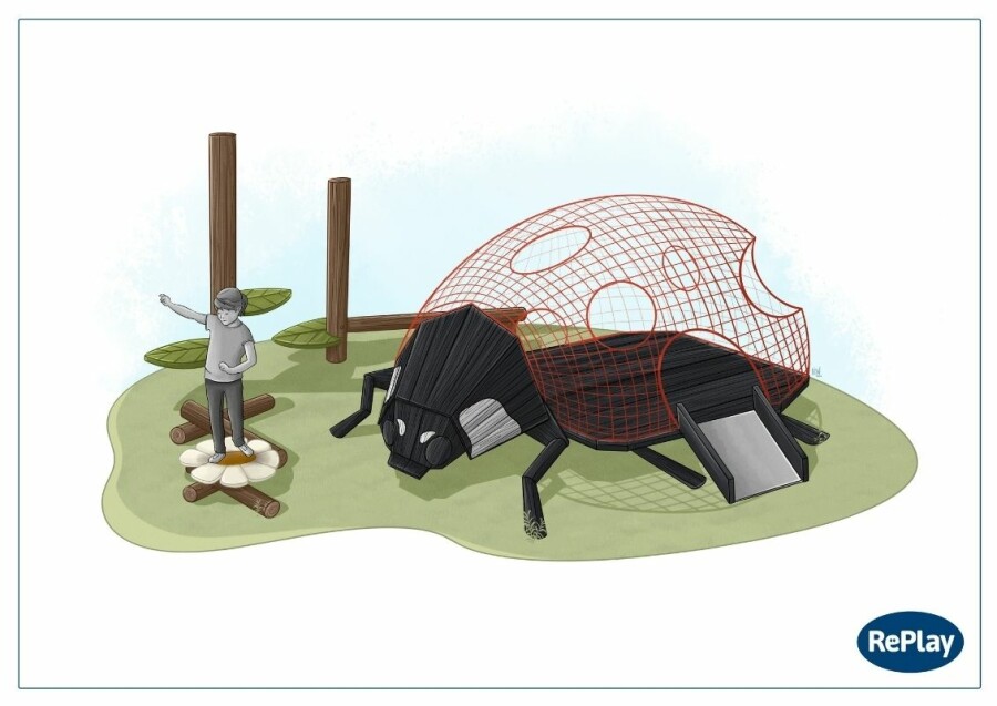 Hi hi, dat kriebelt! Speel samen met het lieveheersbeestje op dit parcourstoestel. Pas je op dat je er niet vanaf valt.