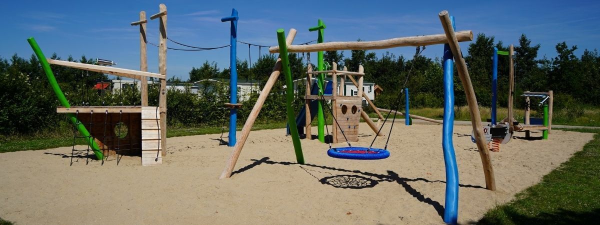 De laatste wens van de camping was om een speelplek te creëren die alle doelgroepen aanspreekt. Zowel de kleintjes, als de grotere kinderen. Nadat we duidelijk hadden hoeveel fysieke ruimte er was om te vullen, zijn we met een plan gekomen, bestaande uit een diversiteit aan speeltoestellen. Uiteindelijk is daar de volgende samenstelling uit voort gekomen en deze is ook geplaatst: een maatwerk speelboot, speelboot Lucas, een balanceerwip, ons veertoestel bootje, de strandtent, een zandsloepje en een vogelnestschommel. Speelplezier voor iedereen!