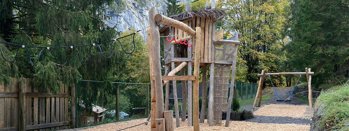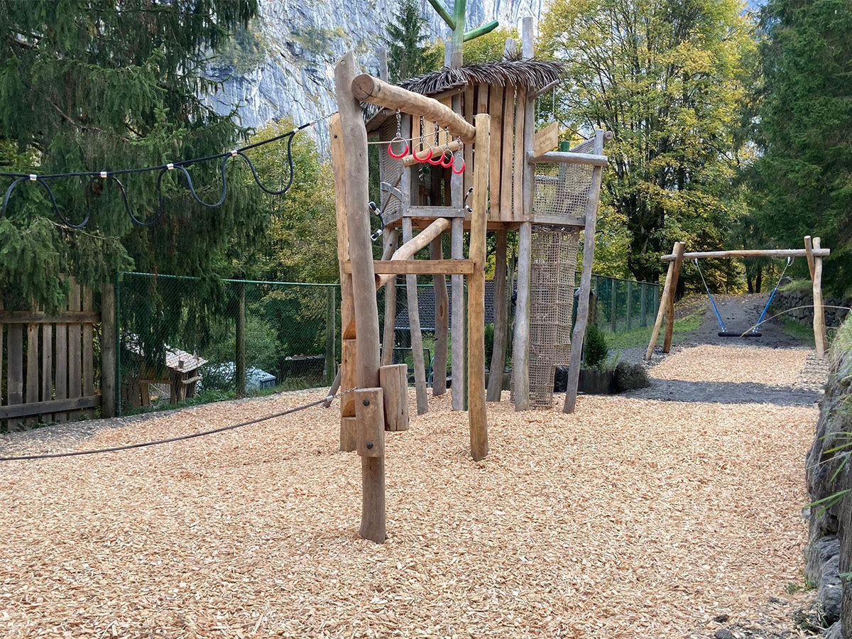 Camping Jungfrau uit Zwitserland toonde op de Recreatie Vakbeurs 2023 interesse in ons beurstoestel. Met wat aanpassingen en uitbreidingen met extra speelelementen zoals een glijbaan en parcours, werd het het droomtoestel van de camping. Samen met partner HVR werd het toestel succesvol geïnstalleerd, met een natuurlijke houtschors ondergrond. Dankzij deze samenwerking krijgt het toestel een centrale plek op de camping en biedt het volop speelplezier.