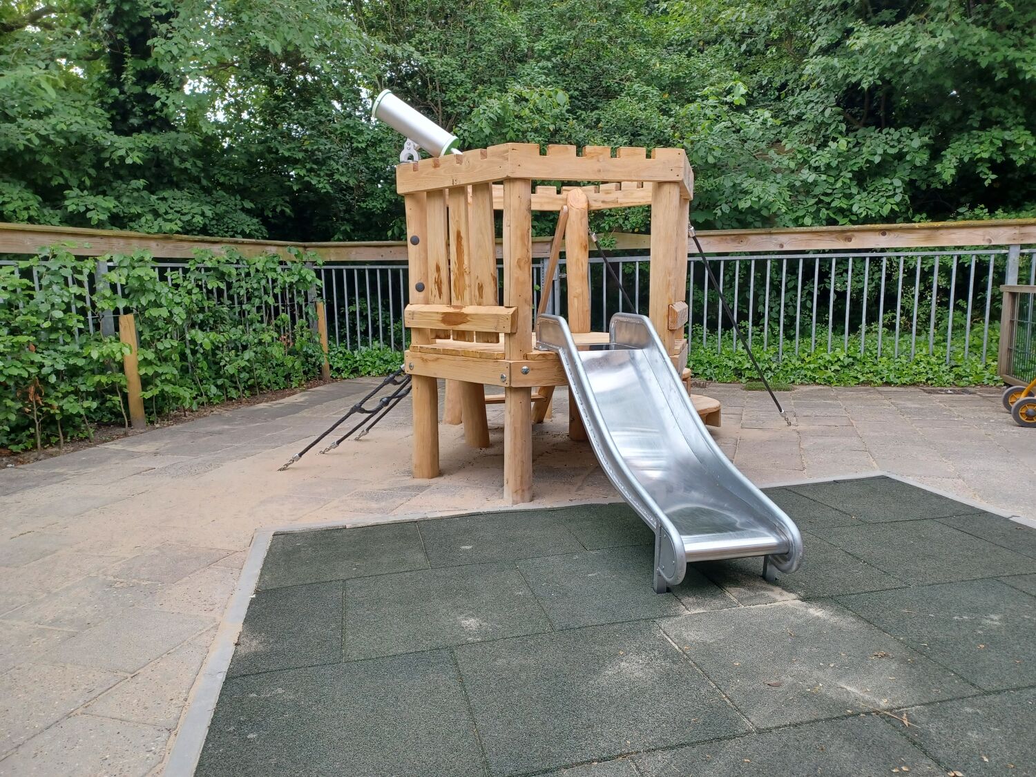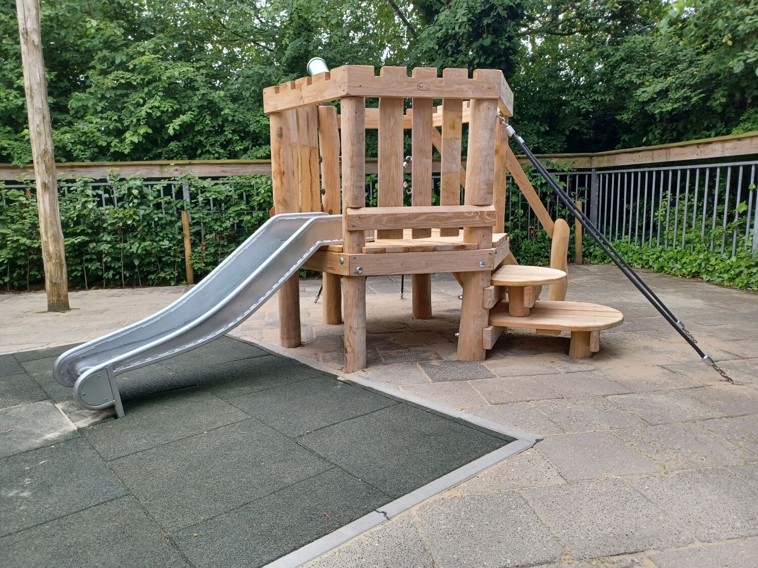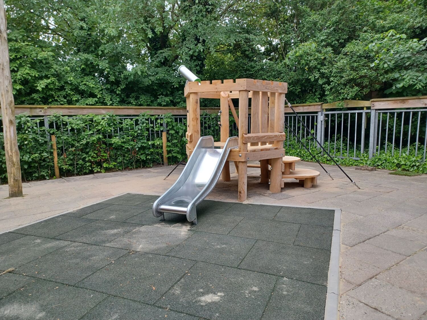 Als ondergrond is er gekozen voor rubbertegels. Zo eindigt het glijden met een zachte landing. Ideaal voor deze doelgroep!