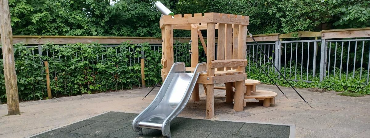 Het speeltoestel waar de keuze op is gevallen is Speelkasteel Ridder. Speelkasteel ridder is een glijbaantoren gemaakt van Robinia hout, die op verschillende manieren te beklimmen is. De kinderen kunnen de toren via de glijbaan verlaten of via de kruimplateau’s of klimladder. Genoeg mogelijkheden!