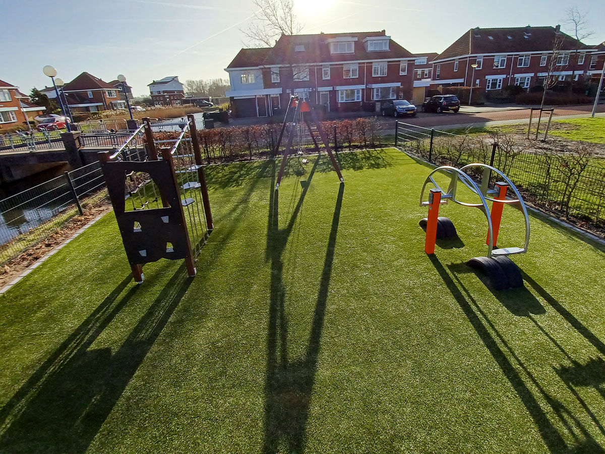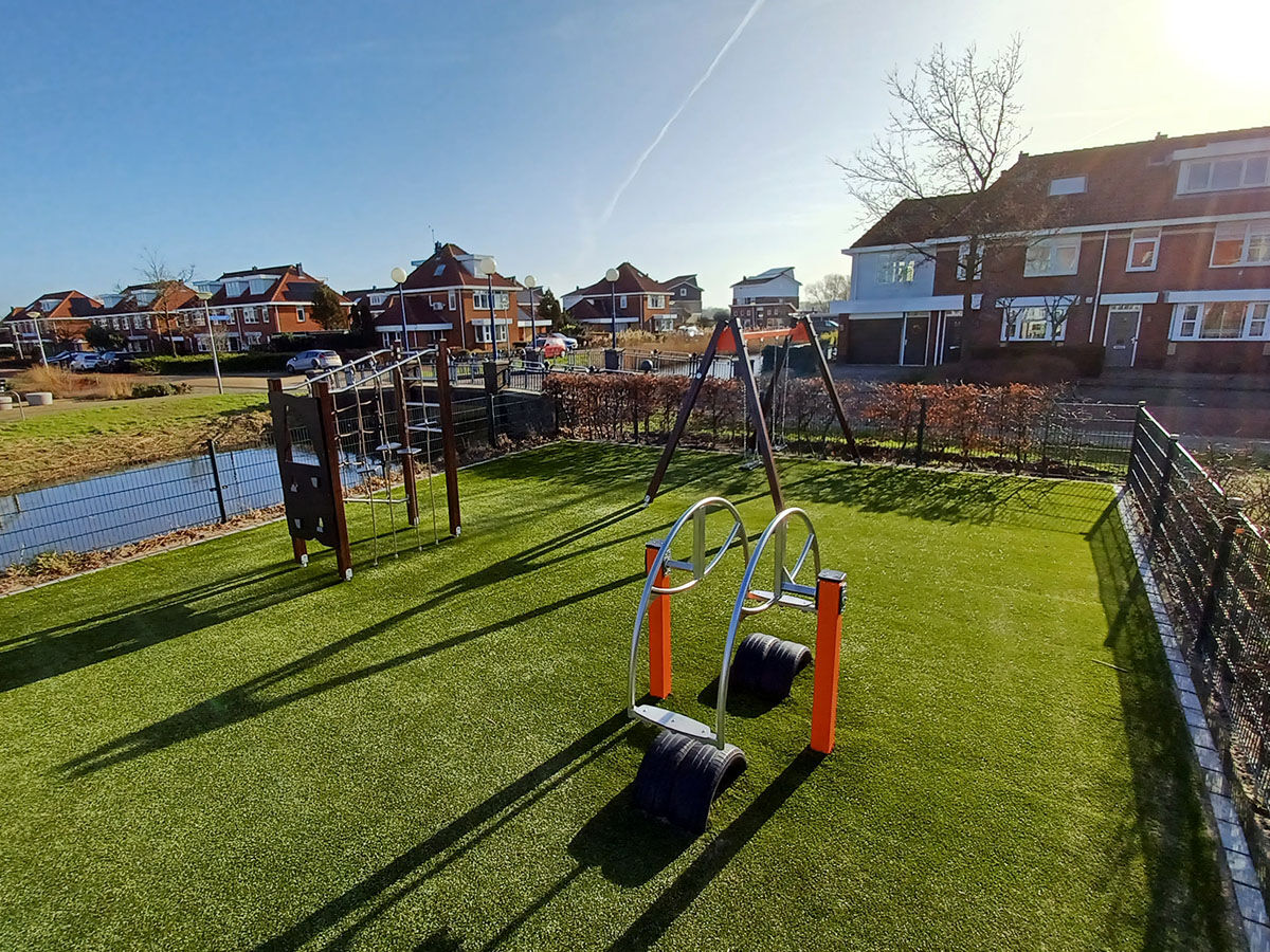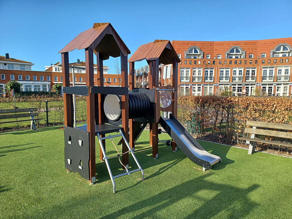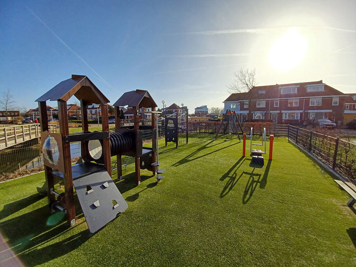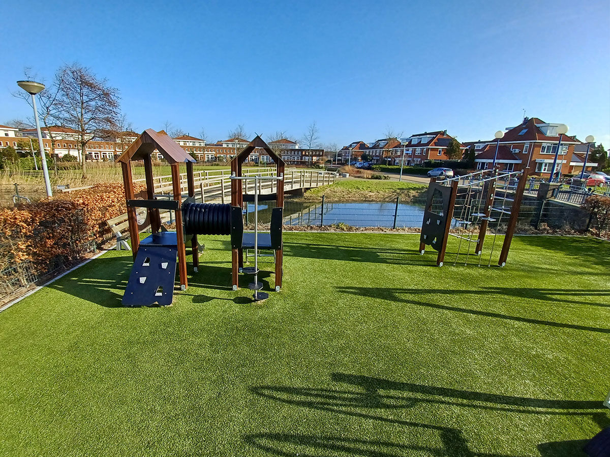 Voor de kleine kids is er gekozen voor een dubbele schommel, speelcombinatie Robin en speelpaneel Twister. Zo kunnen de kinderen zich ontwikkelen op het gebied van balans, kracht en coördinatie. En natuurlijk zorgen deze speeltoestellen ook voor veel speelplezier! Zeker in combinatie met de ondergrond van kunstgras kunnen kinderen hier zorgeloos urenlang spelen.