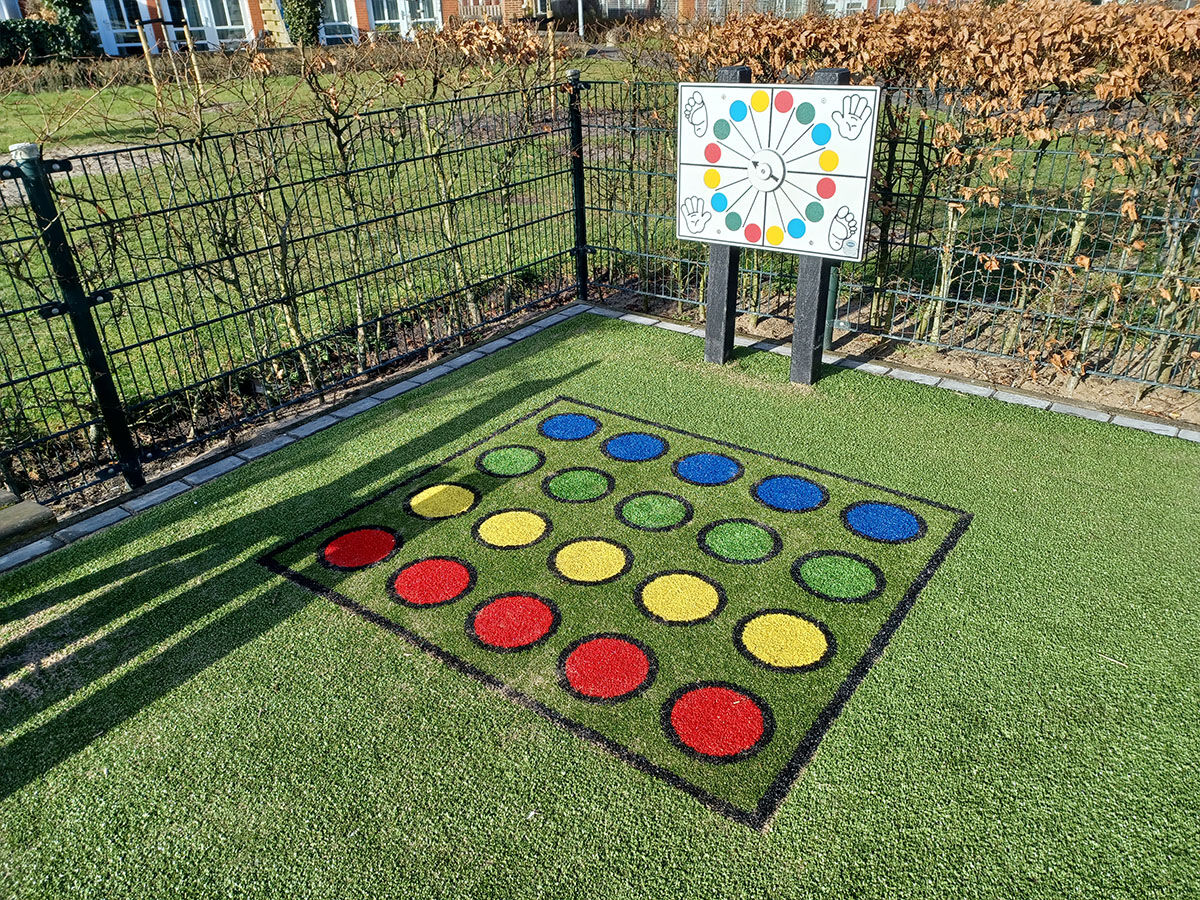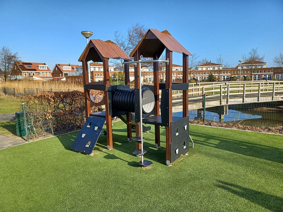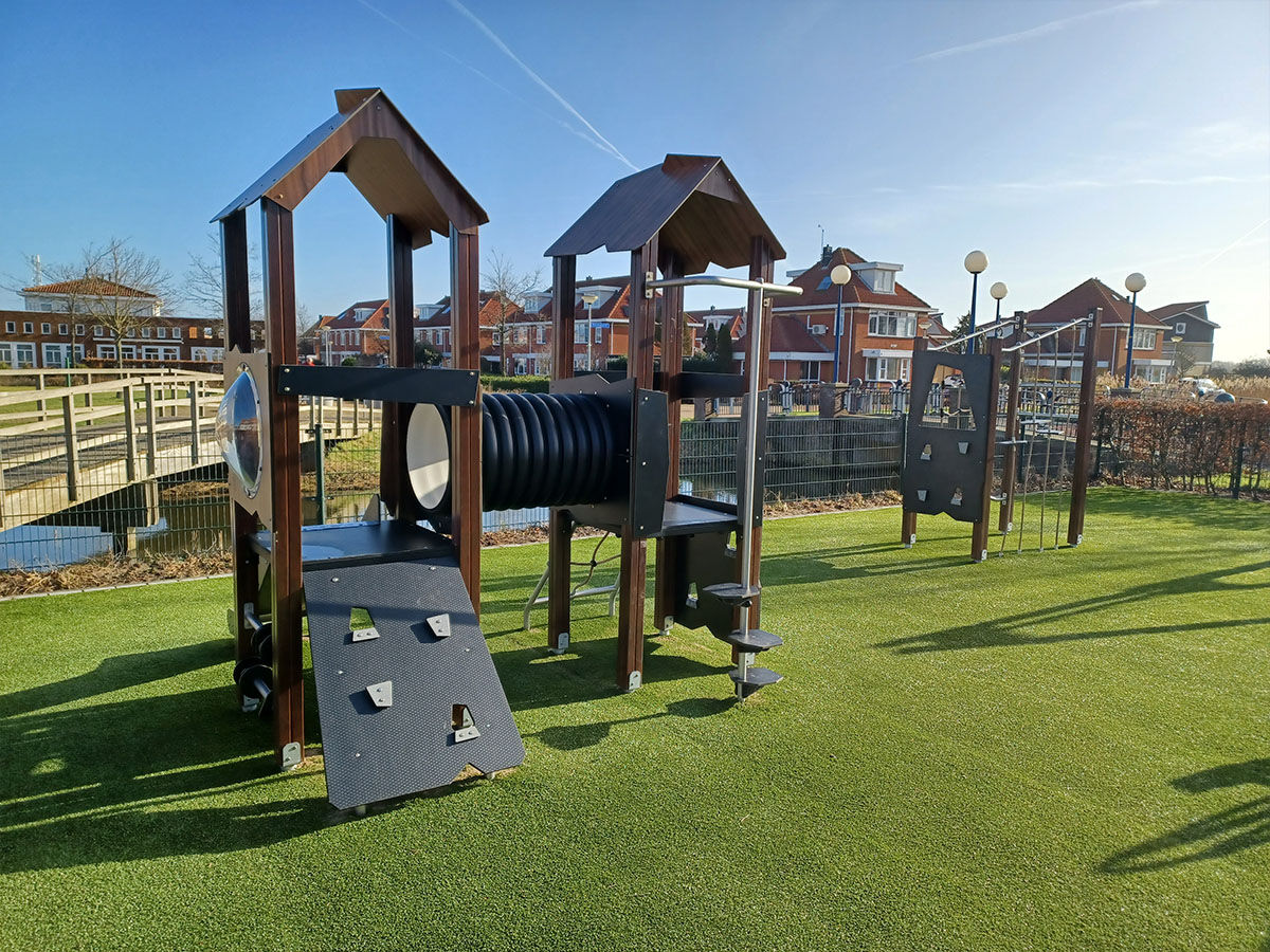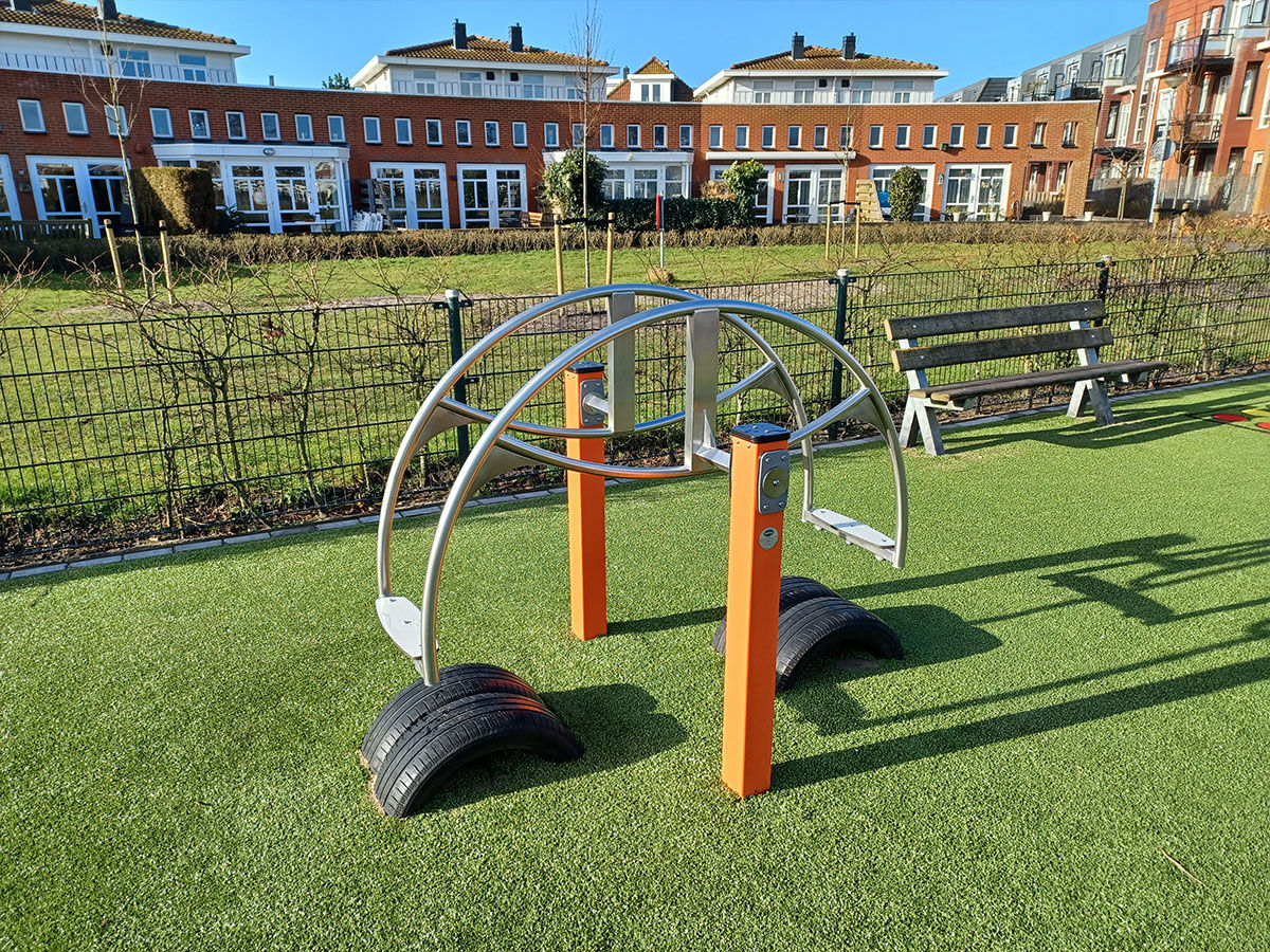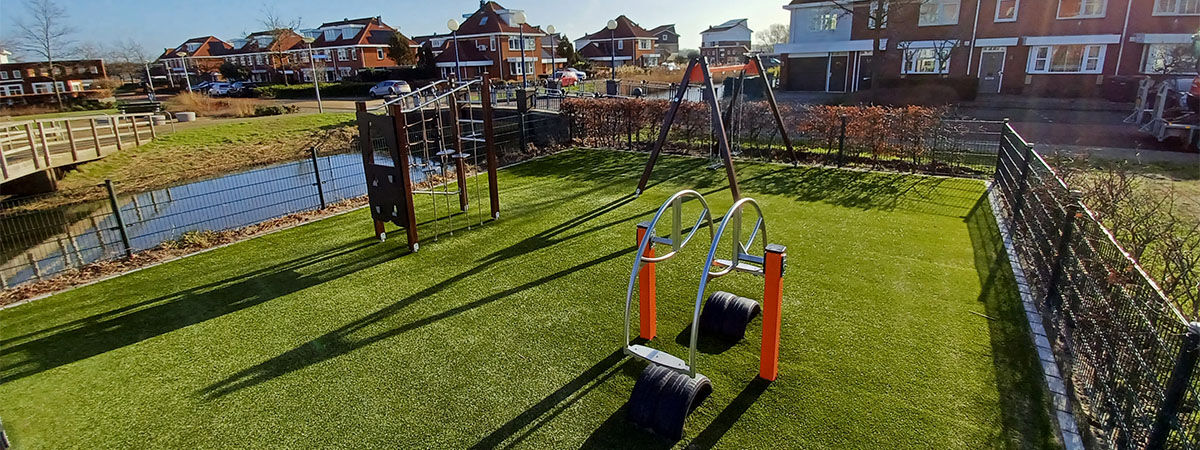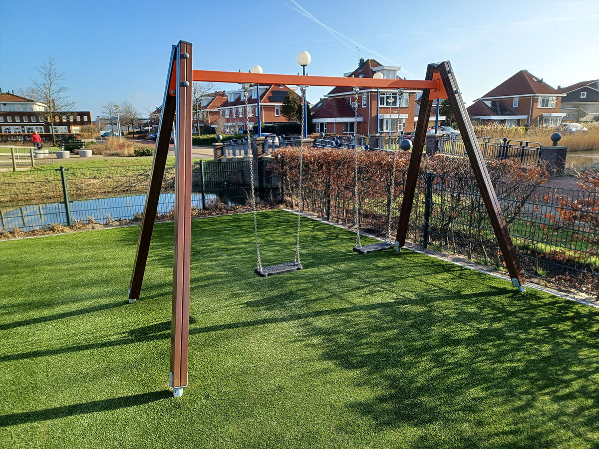 Voor de kleine kids is er gekozen voor een dubbele schommel, speelcombinatie Robin en speelpaneel Twister. Zo kunnen de kinderen zich ontwikkelen op het gebied van balans, kracht en coördinatie. En natuurlijk zorgen deze speeltoestellen ook voor veel speelplezier! Zeker in combinatie met de ondergrond van kunstgras kunnen kinderen hier zorgeloos urenlang spelen.