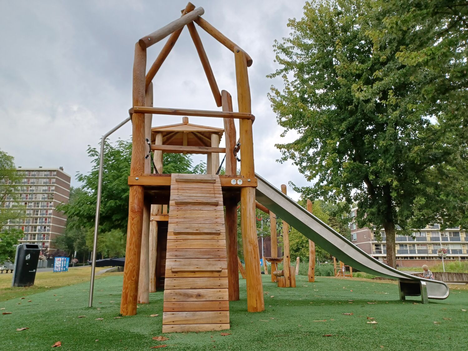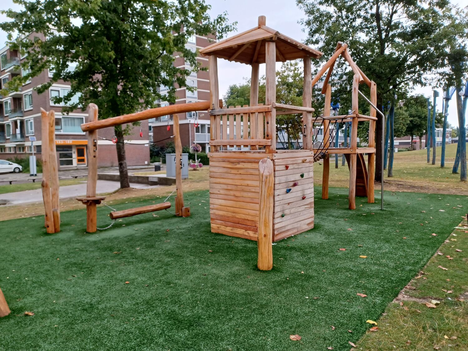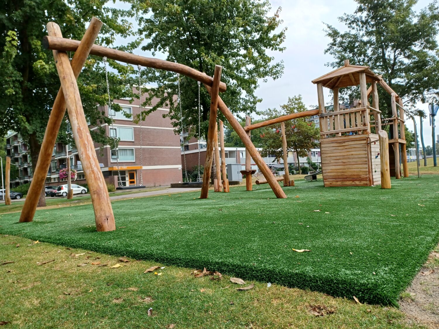 De uitbreiding en upgrade van deze speelplek heeft ervoor gezorgd dat het een echte ontmoetingsplek in de wijk is geworden. De combinatie van speeltoestellen spreekt kinderen van alle leeftijdscategorieën aan, en de natuurlijke uitstraling maakt het een plek waar buurtbewoners fijn kunnen samenkomen.