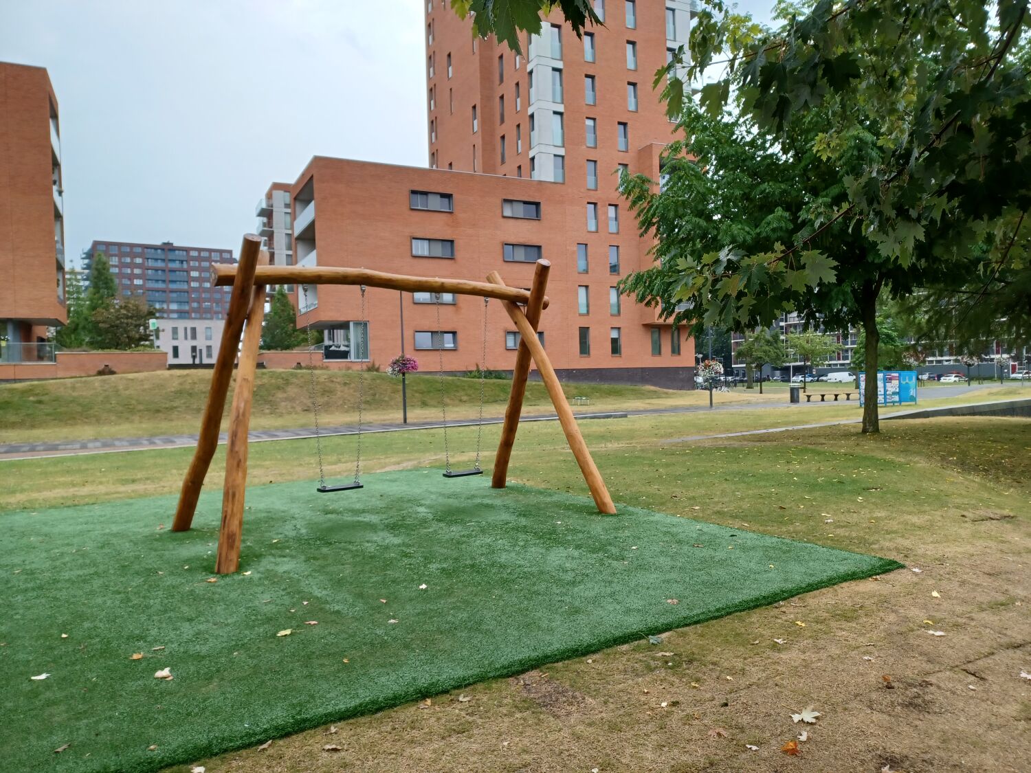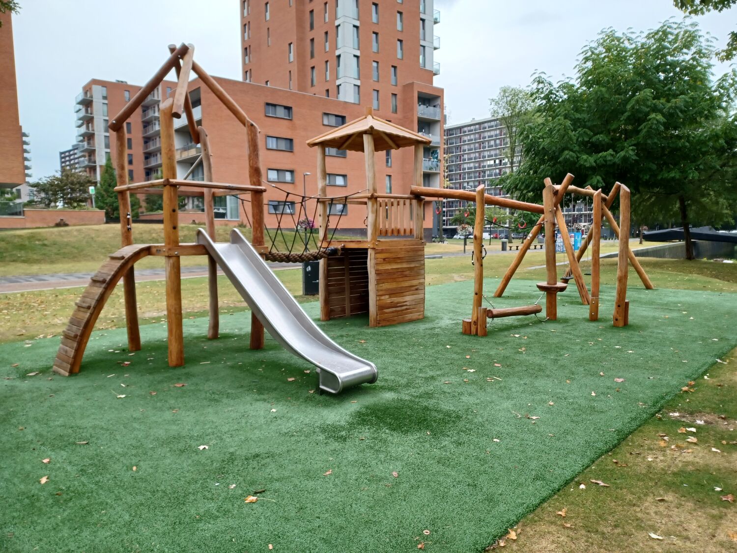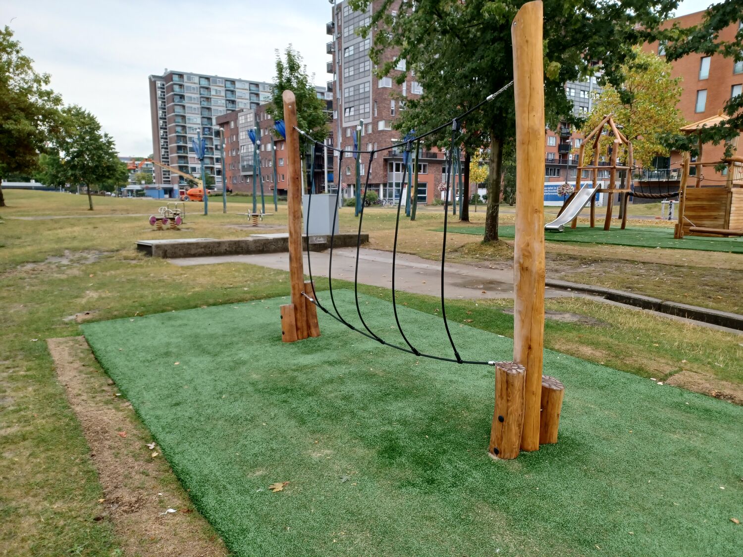 De uitbreiding en upgrade van deze speelplek heeft ervoor gezorgd dat het een echte ontmoetingsplek in de wijk is geworden. De combinatie van speeltoestellen spreekt kinderen van alle leeftijdscategorieën aan, en de natuurlijke uitstraling maakt het een plek waar buurtbewoners fijn kunnen samenkomen.