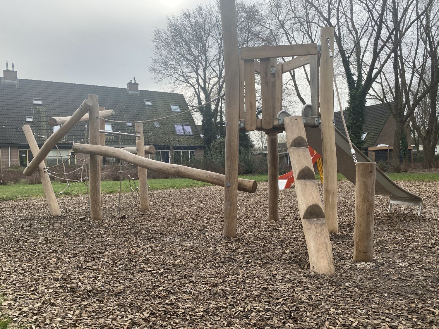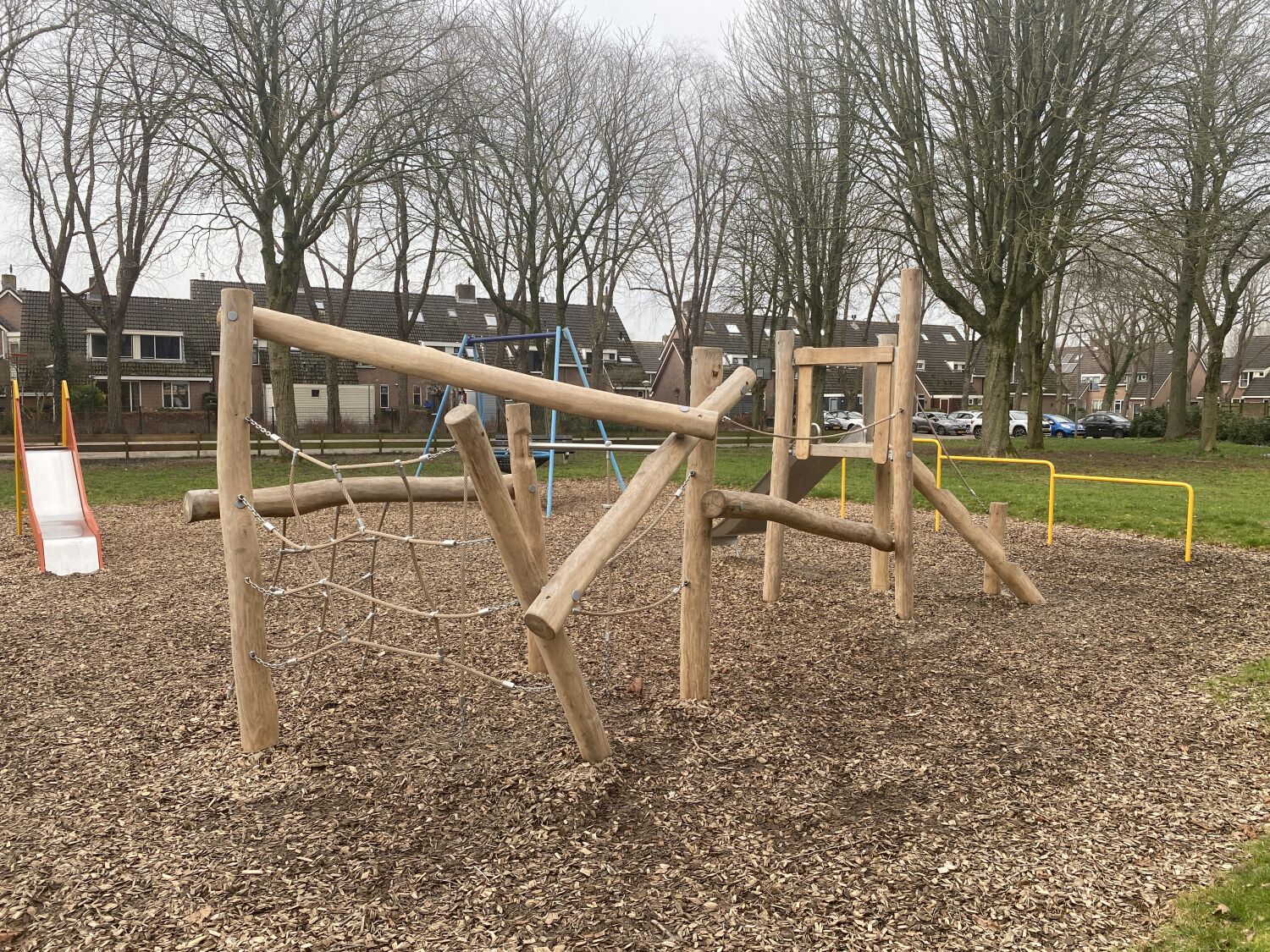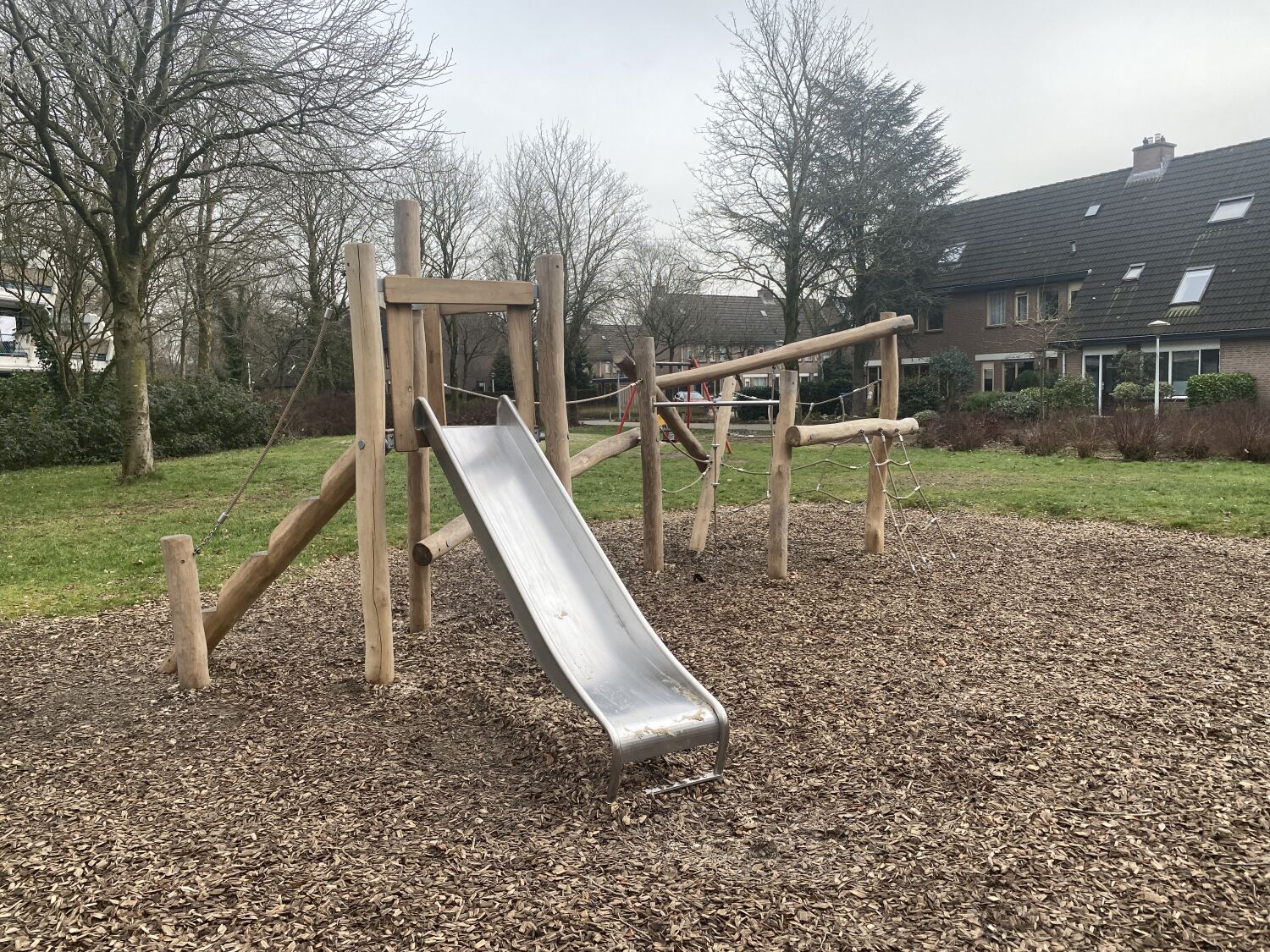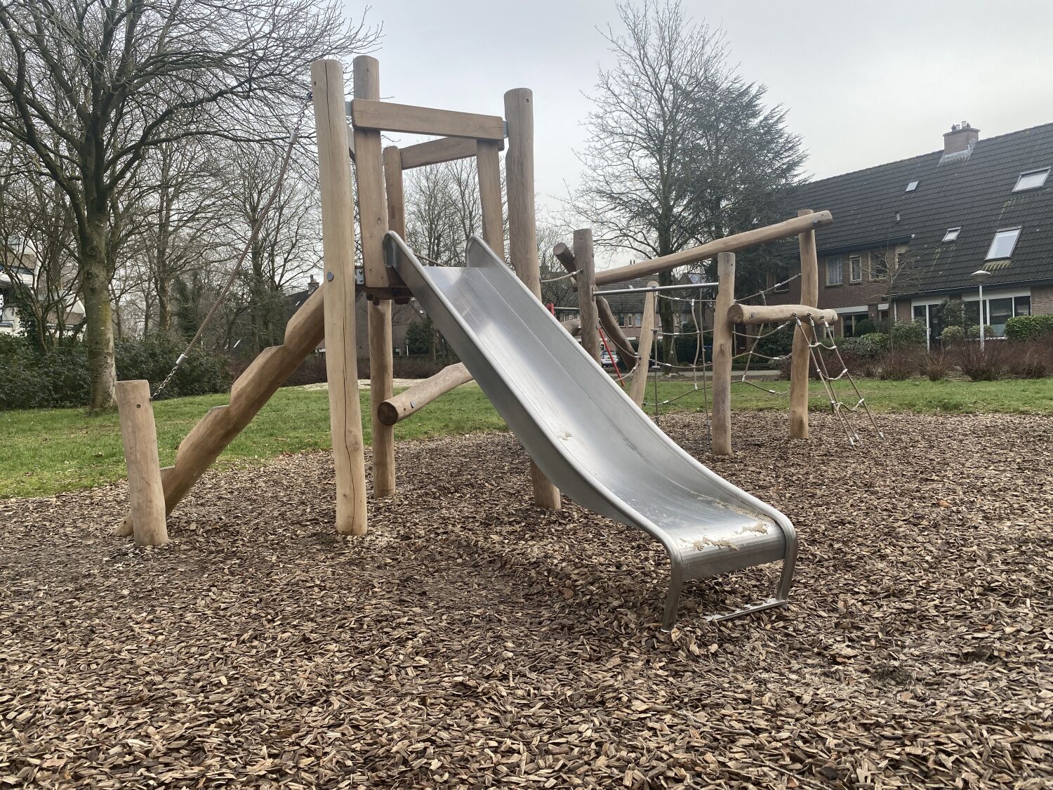 Uiteindelijk is er door de bewoners voor de variant met de Robinia speeltoestellen gekozen. De uitstraling van het Robinia hout past veel beter in de buurt. Zeker aangezien er veel bomen aanwezig zijn op het speelterrein. Zo vormt het één natuurlijk geheel. De ondergrond van houtsnippers maakt het plaatje helemaal af.