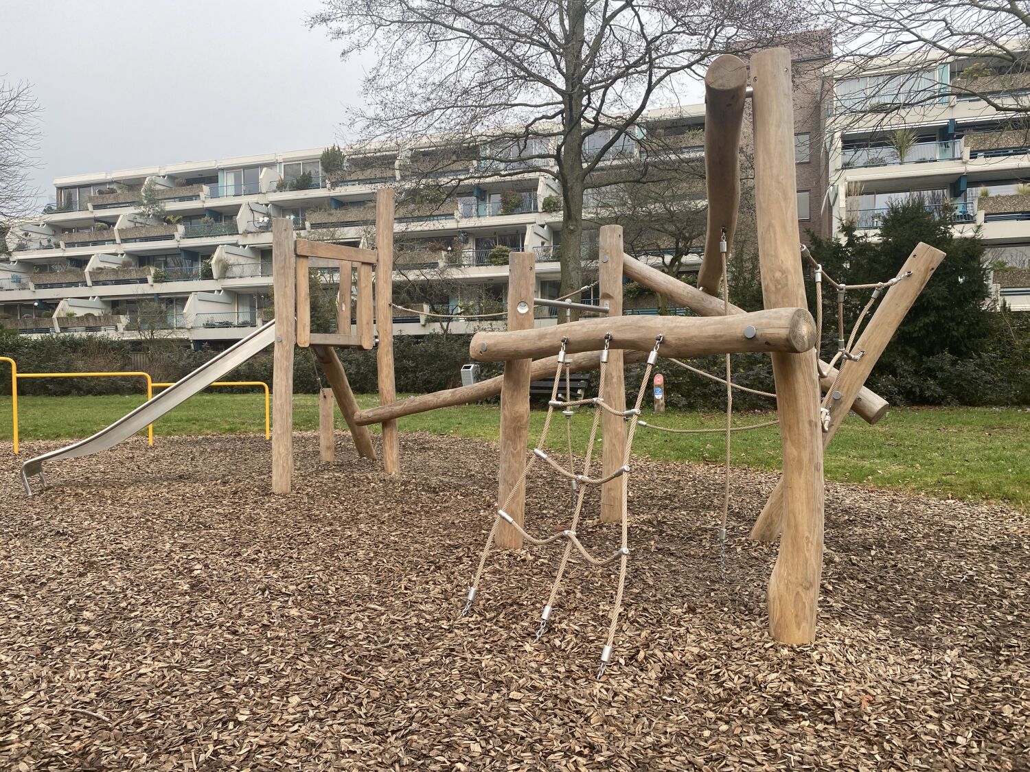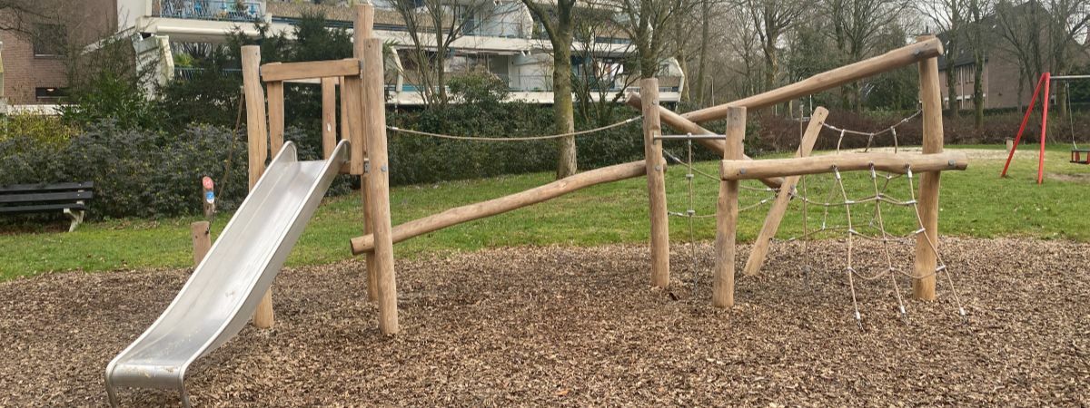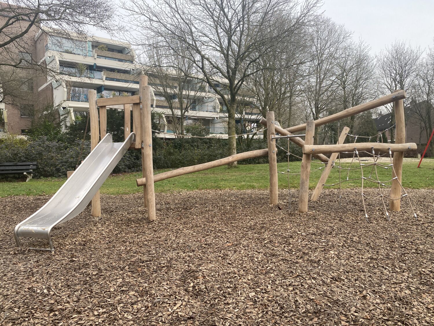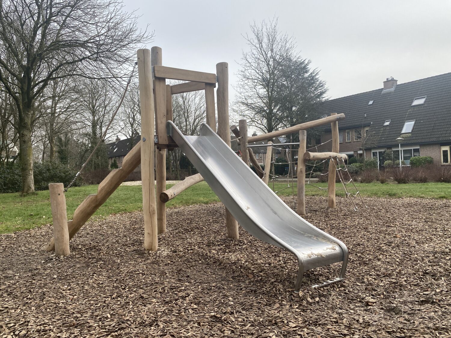 Uiteindelijk is er door de bewoners voor de variant met de Robinia speeltoestellen gekozen. De uitstraling van het Robinia hout past veel beter in de buurt. Zeker aangezien er veel bomen aanwezig zijn op het speelterrein. Zo vormt het één natuurlijk geheel. De ondergrond van houtsnippers maakt het plaatje helemaal af.