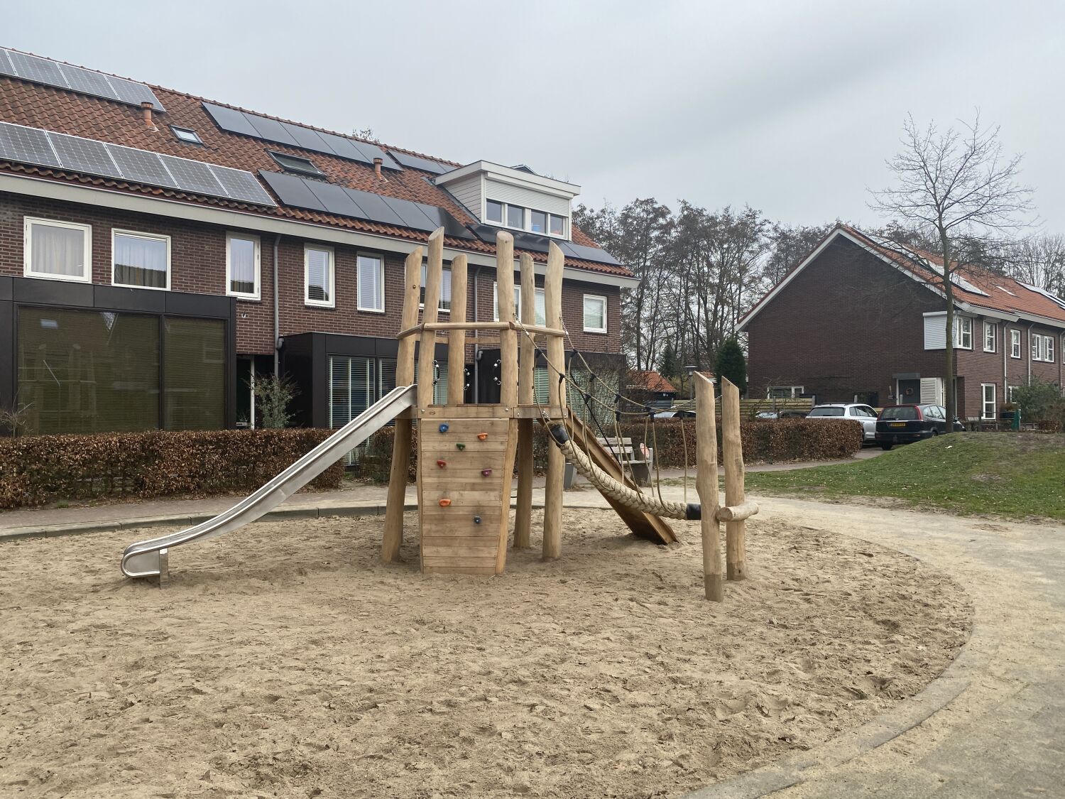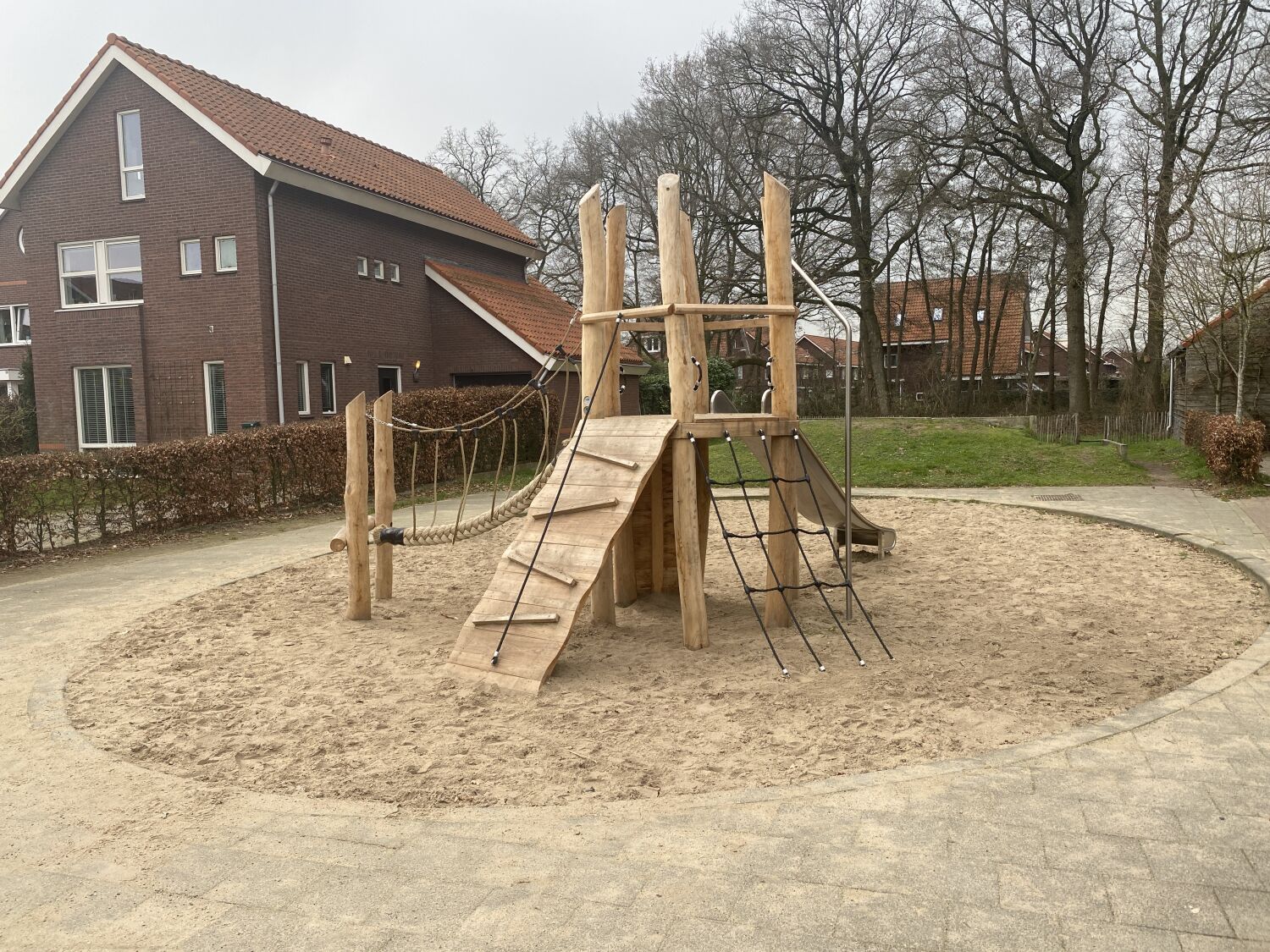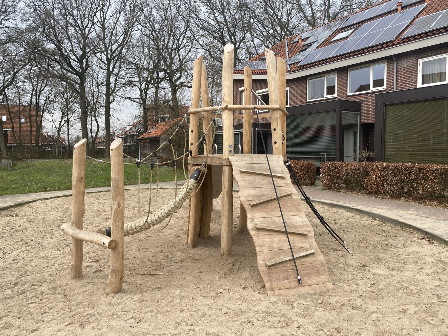 De gemeente had duidelijke wensen betreffende de vervanging van de speelcombinatie. Graag wilde ze dat het nieuwe speeltoestel van Robinia hout zou zijn gemaakt en dat het net als het vorige speeltoestel meerdere speelaanleidingen in één zou hebben. De dubbele schommel in het speeltuintje is ook gemaakt van Robinia hout. Vandaar dat de gemeente dit graag één geheel wilde houden, zodat het nieuwe toestel perfect zou passen in het straatbeeld.
