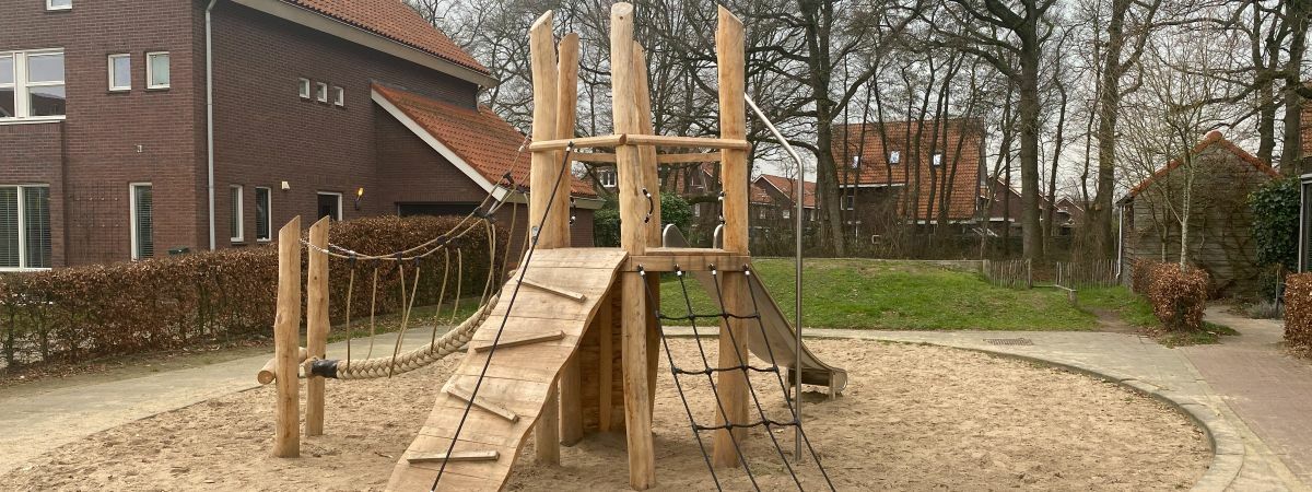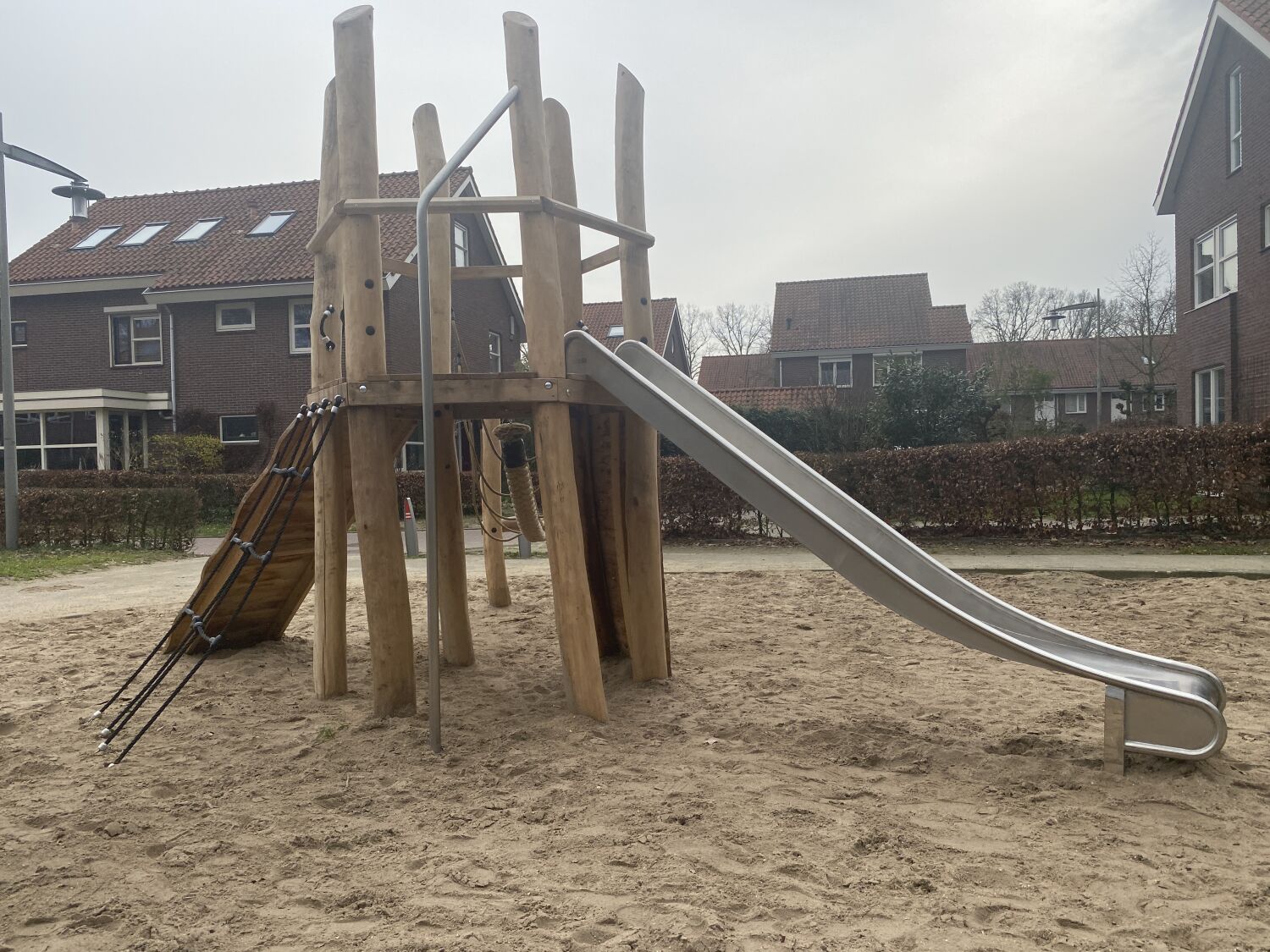 De keuze is gevallen op Speelcombinatie Lijsterbes. Een slimme keuze als je het ons vraagt! Dit speeltoestel neemt qua oppervlakte niet heel veel ruimte in beslag, maar biedt wel vele speelmogelijkheden. Zo kun je via verschillende wegen naar boven klimmen, kan je oefenen met je balans en kun je via twee verschillende manieren weer naar beneden glijden. Genoeg uitdaging kun je dus wel zeggen!
