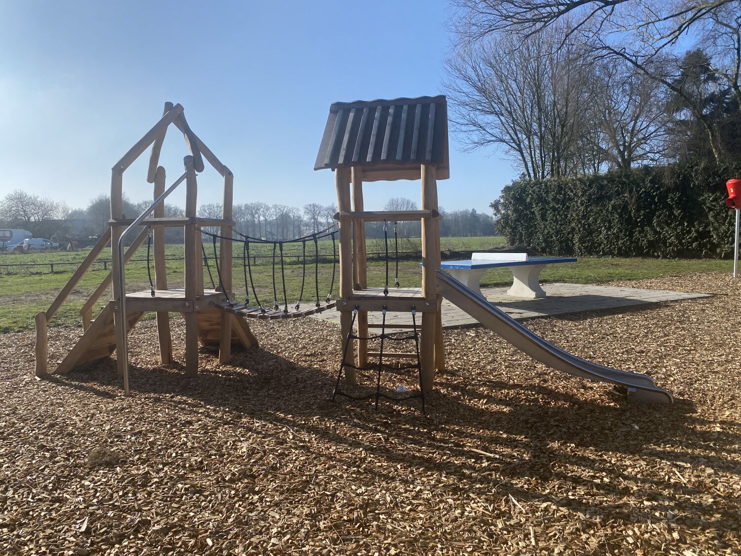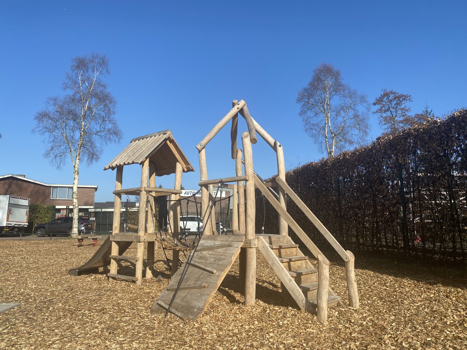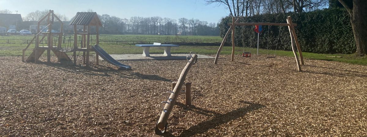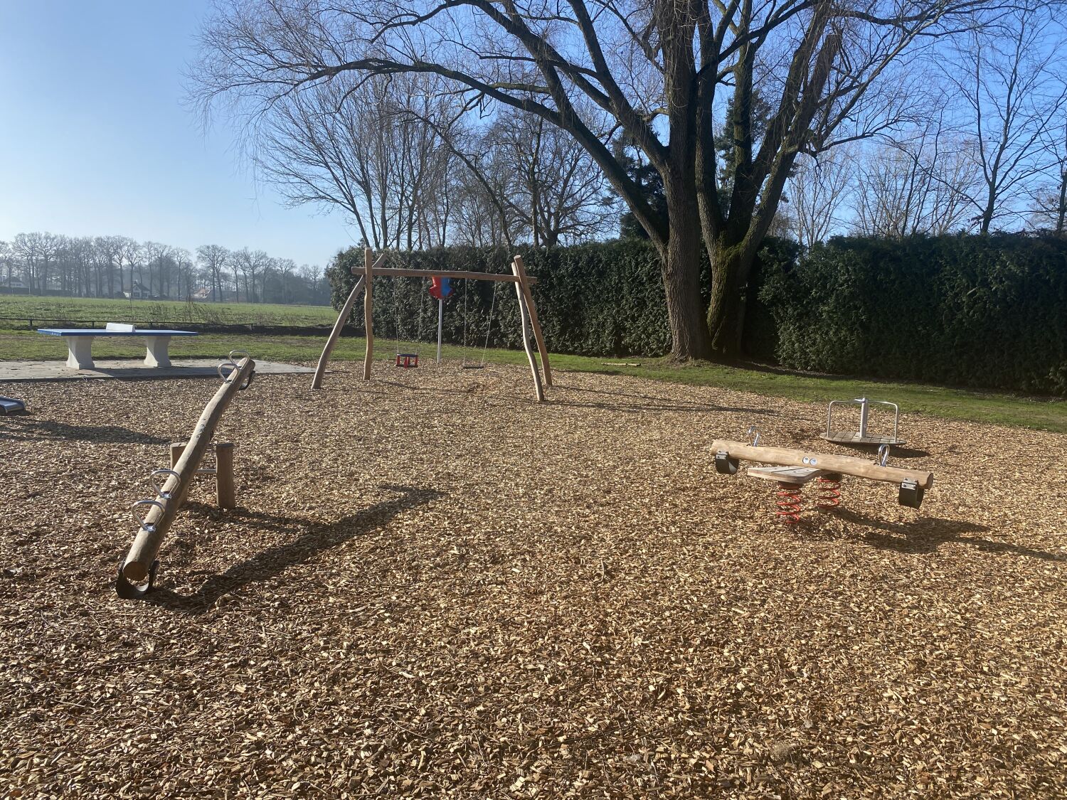 Om een natuurlijke uitstraling te realiseren zijn alle speeltoestellen van Robinia hout gemaakt. Er is een carrousel geplaatst, een speelcombinatie, een wip, een veertoestel en een dubbele schommel. Naast de speeltoestellen is er ook gekozen om twee sporttoestellen te plaatsen. Zo staat er nu een tafeltennistafel op de speelplek én een ballenvanger. Kortom: voor elk wat wils!