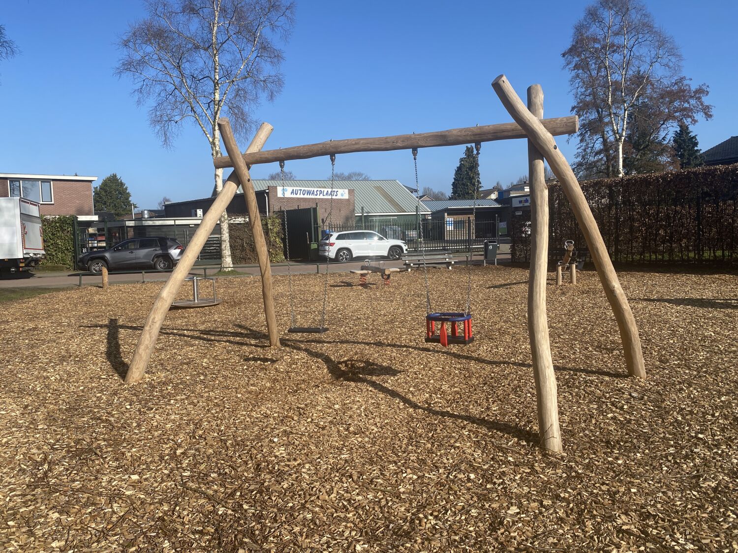 Om de gehele speelplek een natuurlijke uitstraling te geven is er gekozen voor een ondergrond van houtsnippers. Deze ondergrond maakt het plaatje helemaal compleet. Het is een mooi eindresultaat geworden. De kinderen uit de buurt komen er dan ook graag spelen. Dat betekent voor ons: doel bereikt!