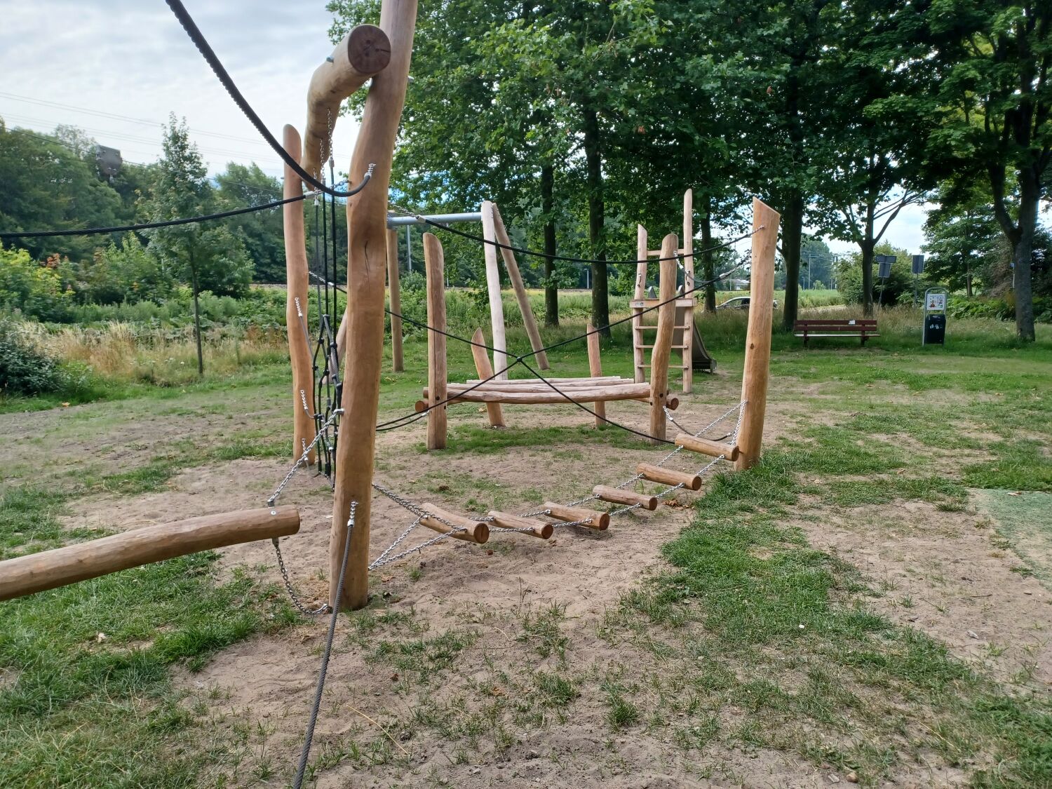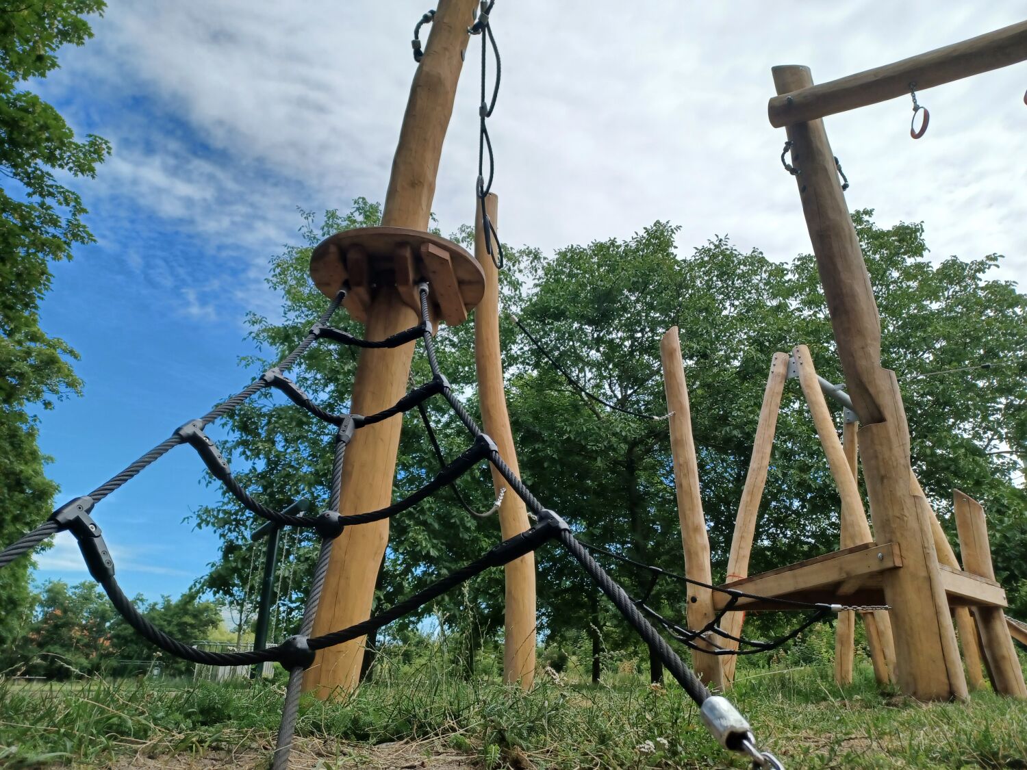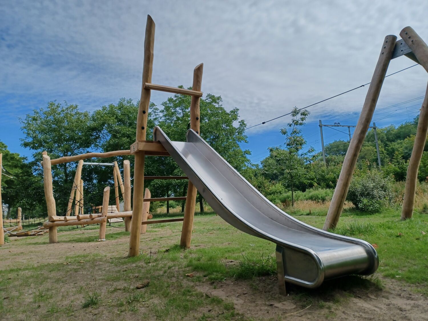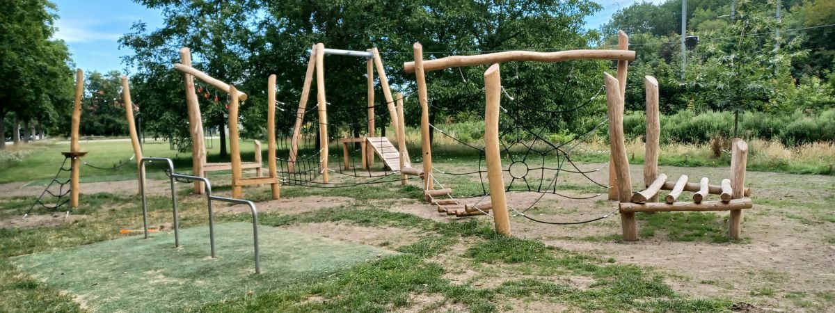 De nieuwe speeltoestellen die we hebben geplaatst zijn allemaal van Robinia gemaakt. Zoals de wens was is er een kabelbaan met startplateau gekomen, een vrijstaande glijbaan en Speelparcours Goudenregen. Stuk voor stuk leuke en uitdagende speeltoestellen, die een brede doelgroep aantrekken.