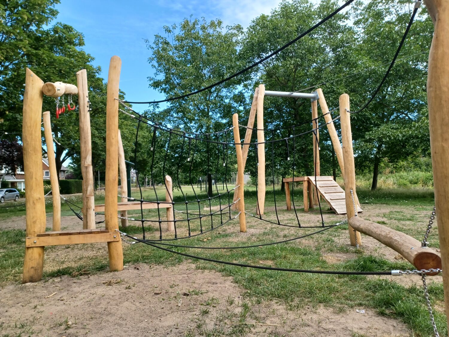 De combinatie van deze nieuwe avontuurlijke speeltoestellen met de bestaande speeltoestellen zorgt ervoor dat de speeltuin een vrolijke boel is geworden. Er is voor elke wat wils en kinderen kunnen zich er uren vermaken!