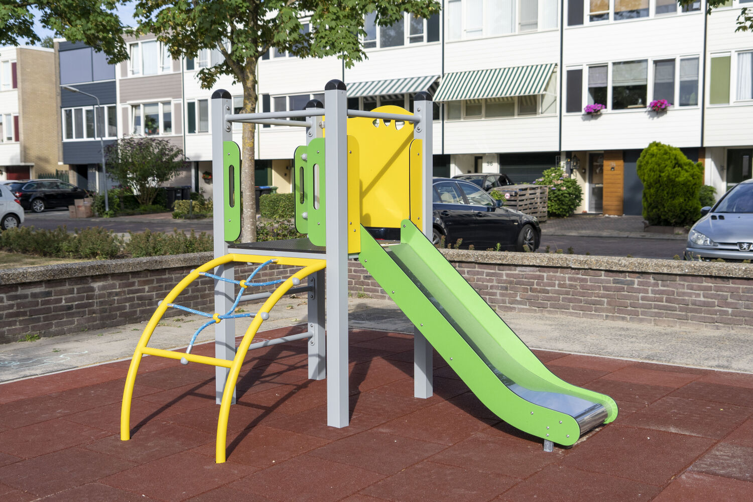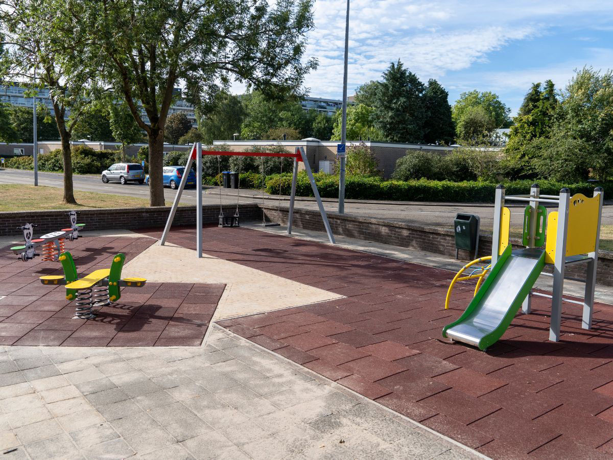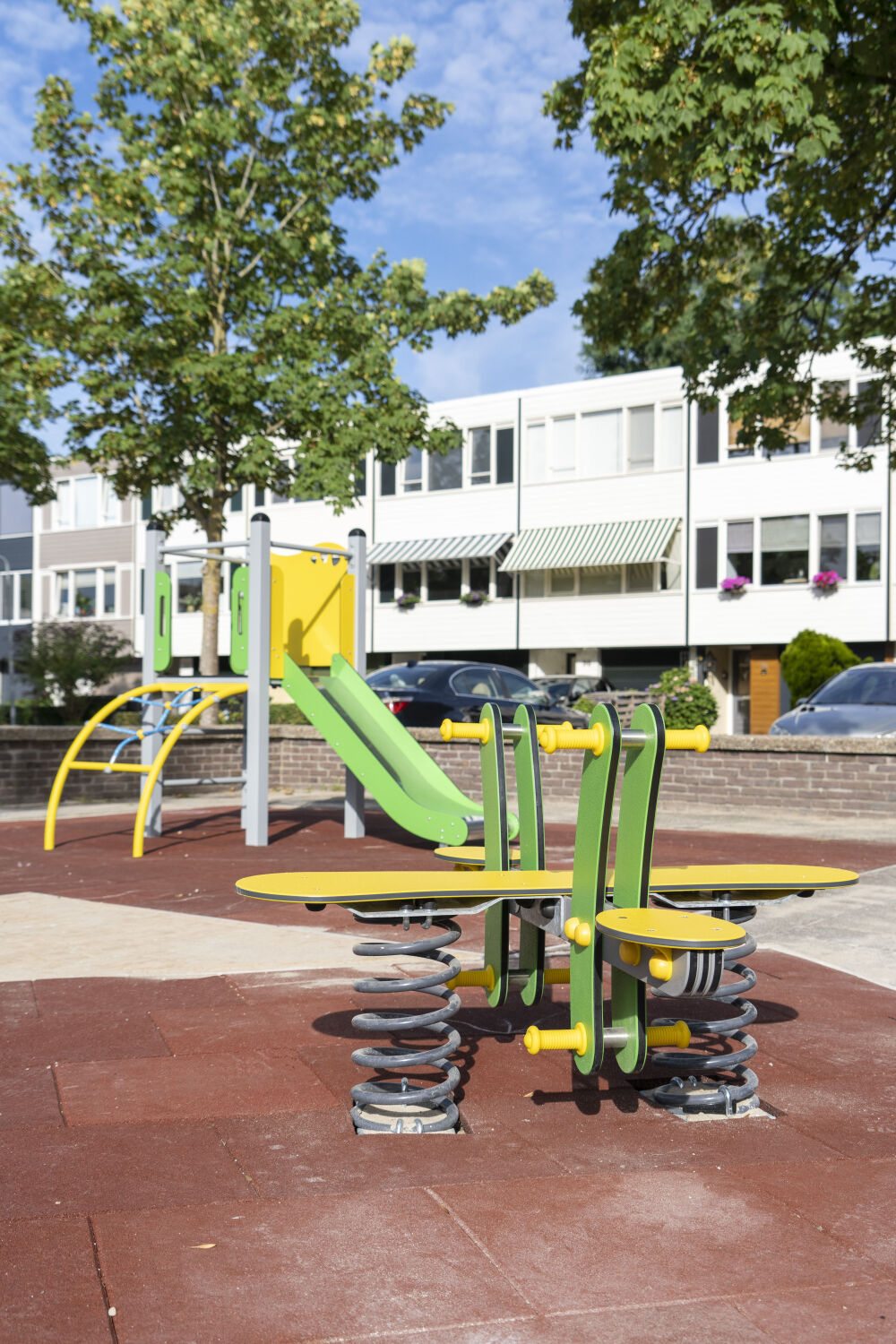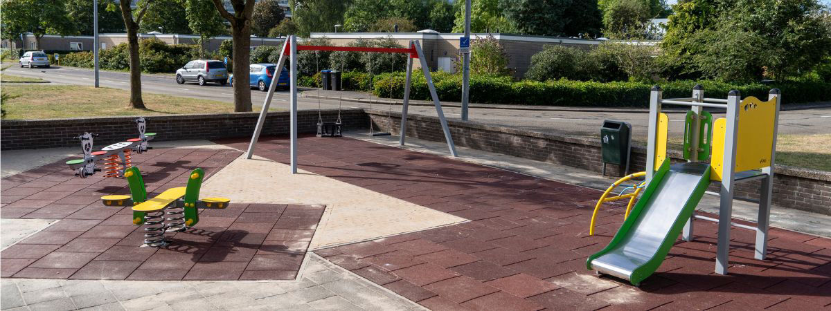 Ook de ondergrond van rubbertegels geeft de speeltuin een leuke uitstraling. En dat niet alleen! Deze valdempende ondergrond is onderhoudsarm en zorgt voor een extra veiligheid voor deze jonge doelgroep. Win win!