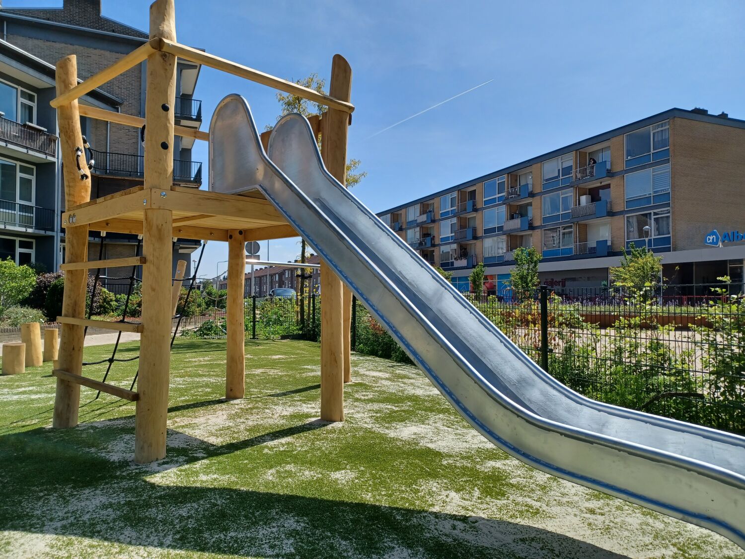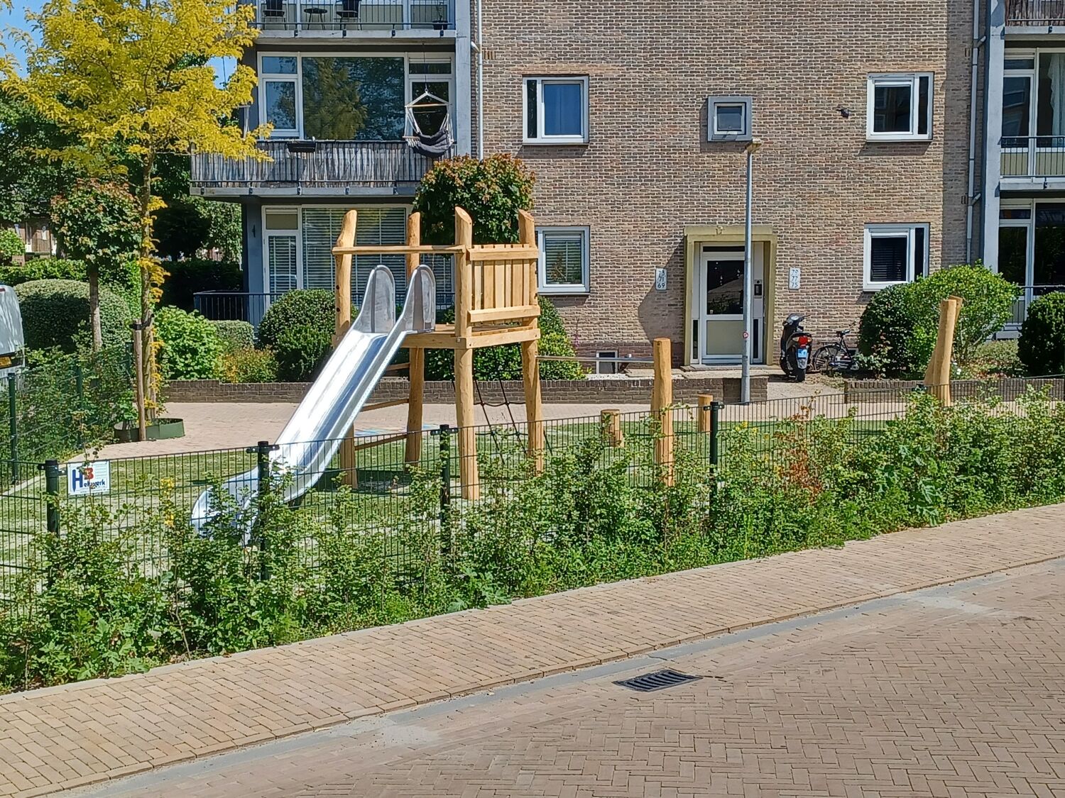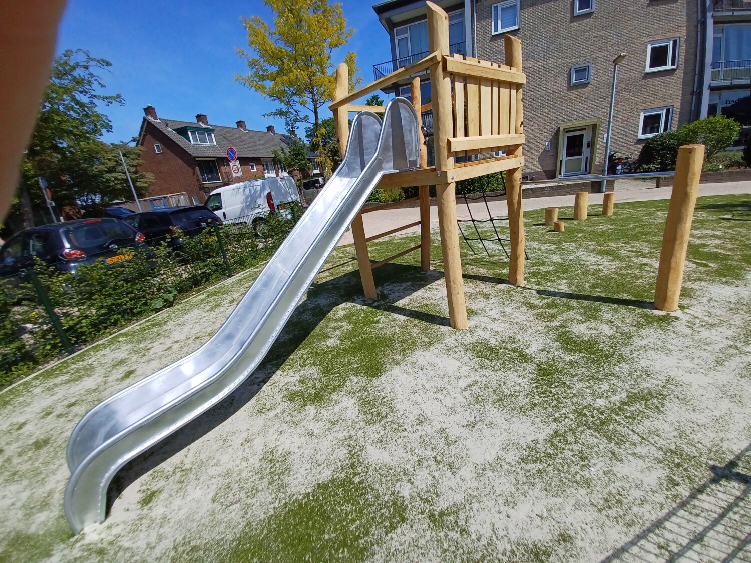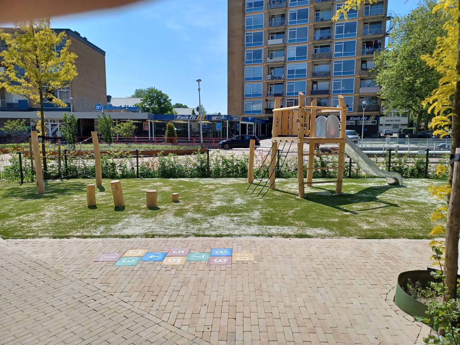 De nieuwe speelplek zorgt voor een frisse uitstraling in de buurt en heeft ondanks het kleine oppervlakte veel speelwaarde te bieden. De kinderen van de buurt kunnen zich er goed vermaken!