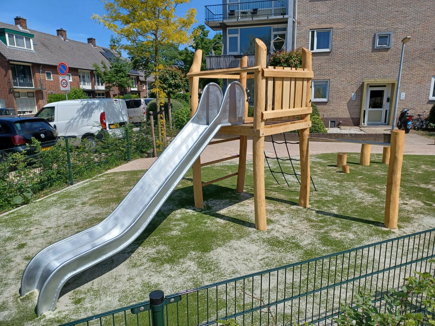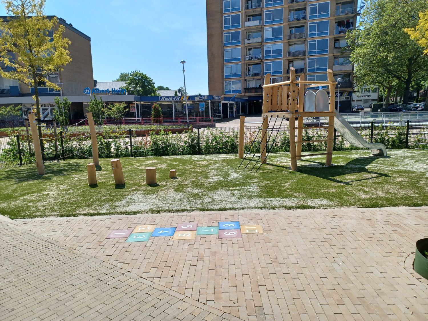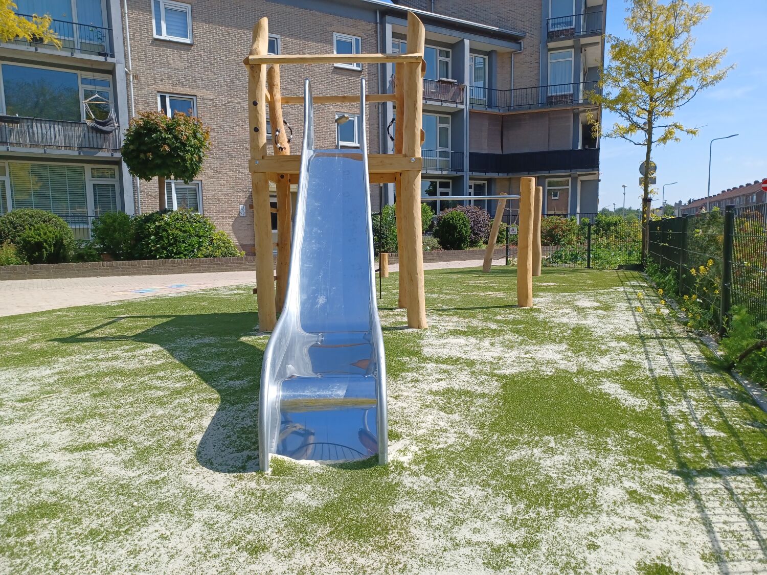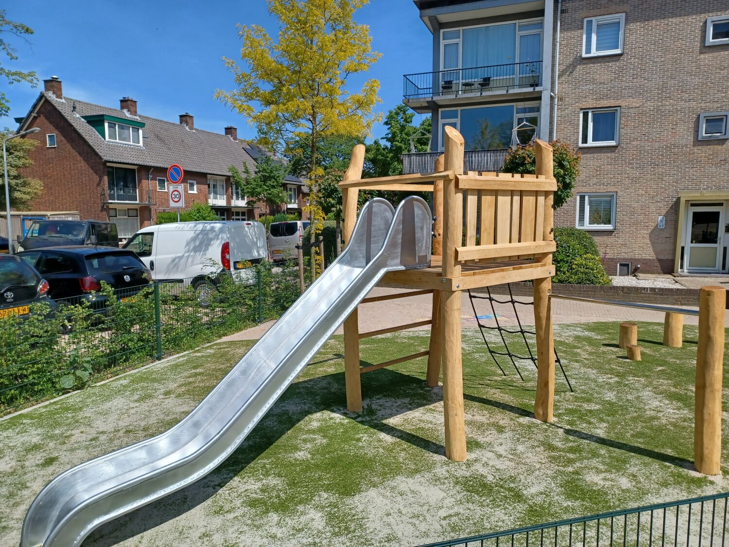 De nieuwe speelplek zorgt voor een frisse uitstraling in de buurt en heeft ondanks het kleine oppervlakte veel speelwaarde te bieden. De kinderen van de buurt kunnen zich er goed vermaken!