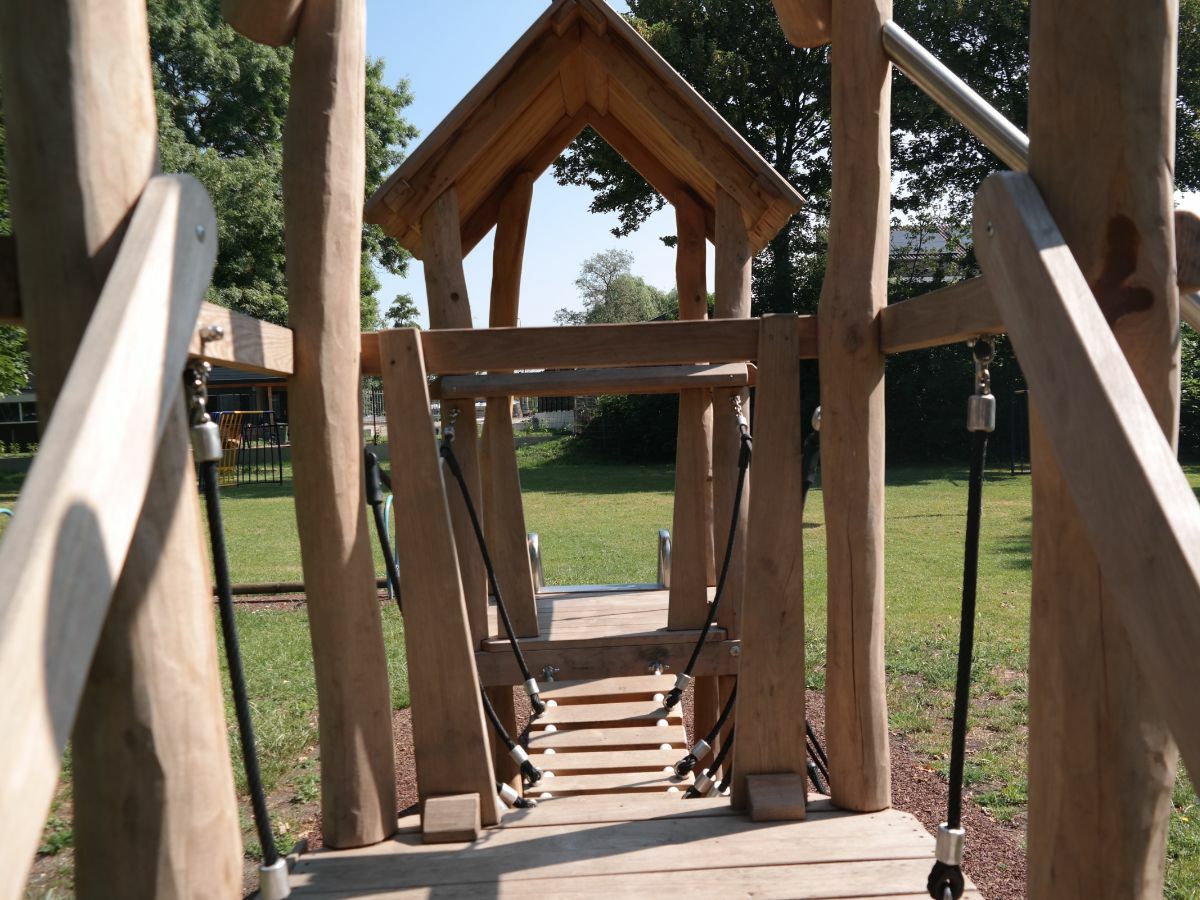 De speeltoestellen die wij uiteindelijk nieuw geplaatst hebben zijn Speelcombinatie Libelle, een Vogelnestschommel en Duikelrek enkel. Een combinatie van speeltoestellen die kinderen van vele leeftijdscategorieën aanspreekt.