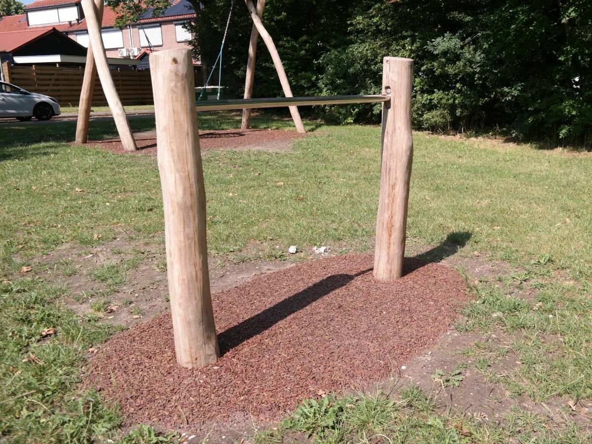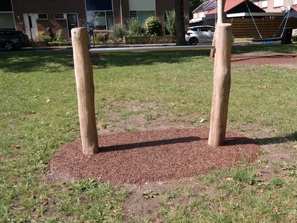 In ons ontwerp hadden wij een aantal van de al aanwezigen speeltoestellen meegenomen, aangezien deze nog in goede staat verkeerden. De speeltoestellen die echt versleten waren hebben wij vervangen door nieuwe, toffe speeltoestellen. Ook hebben wij direct nagedacht over de ondergrond voor de speeltoestellen. Hiervoor hebben wij voor Tigermulch gekozen. Tigermulch beschermt speeltoestellen tegenmaaimachines. Dit maakt het maaien van het gras, wat in de rest van de speelplek aanwezig is, een stuk gemakkelijker!