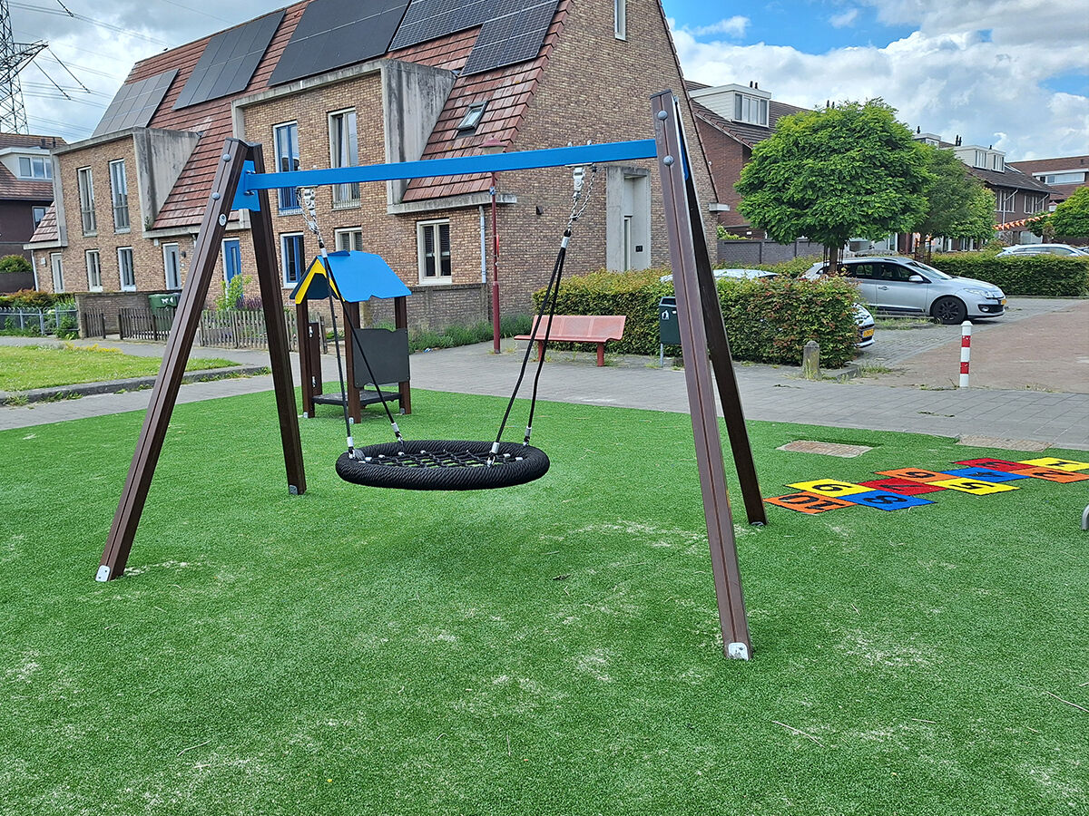 Vanuit het raamcontract kregen wij de de opdracht om de speelplek aan de Waterkers in de gemeente Hoeksche Waarde te renoveren. De gemeente had een eerste participatie ronde gehouden om de wensen van de bewoners te inventariseren. De wens voor een schommel kwam hieruit sterk naar voren.