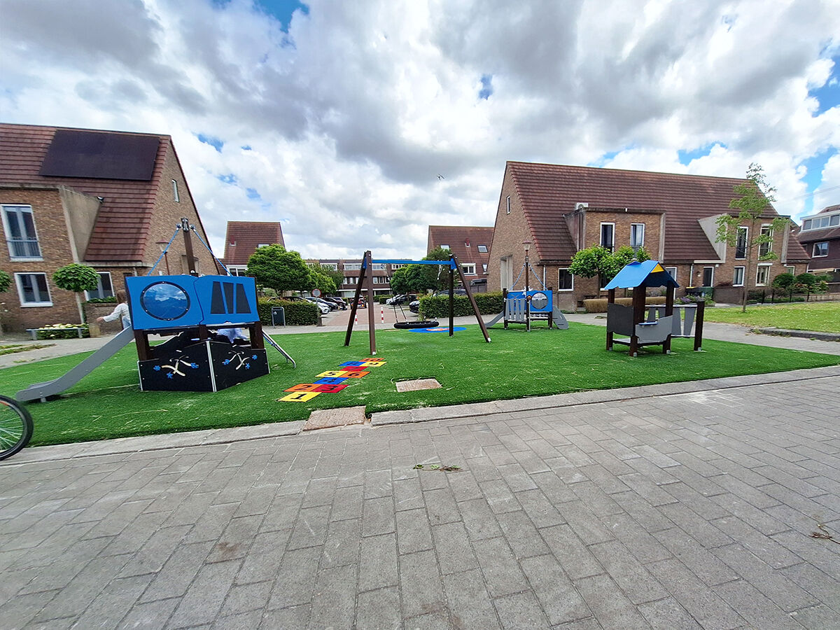 We hebben de gemeente ontzorgd van het begin tot het einde tijdens dit renovatieproces. We verwijderden de oude speeltoestellen en de ondergrond en plaatsen de nieuwe toestellen inclusief de bijbehorende kunstgras ondergrond met signgrass elementen.