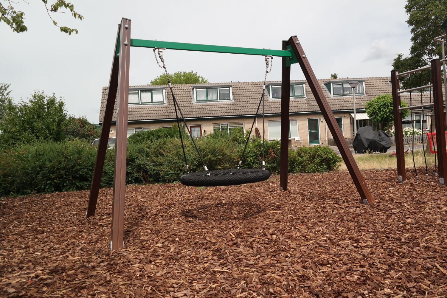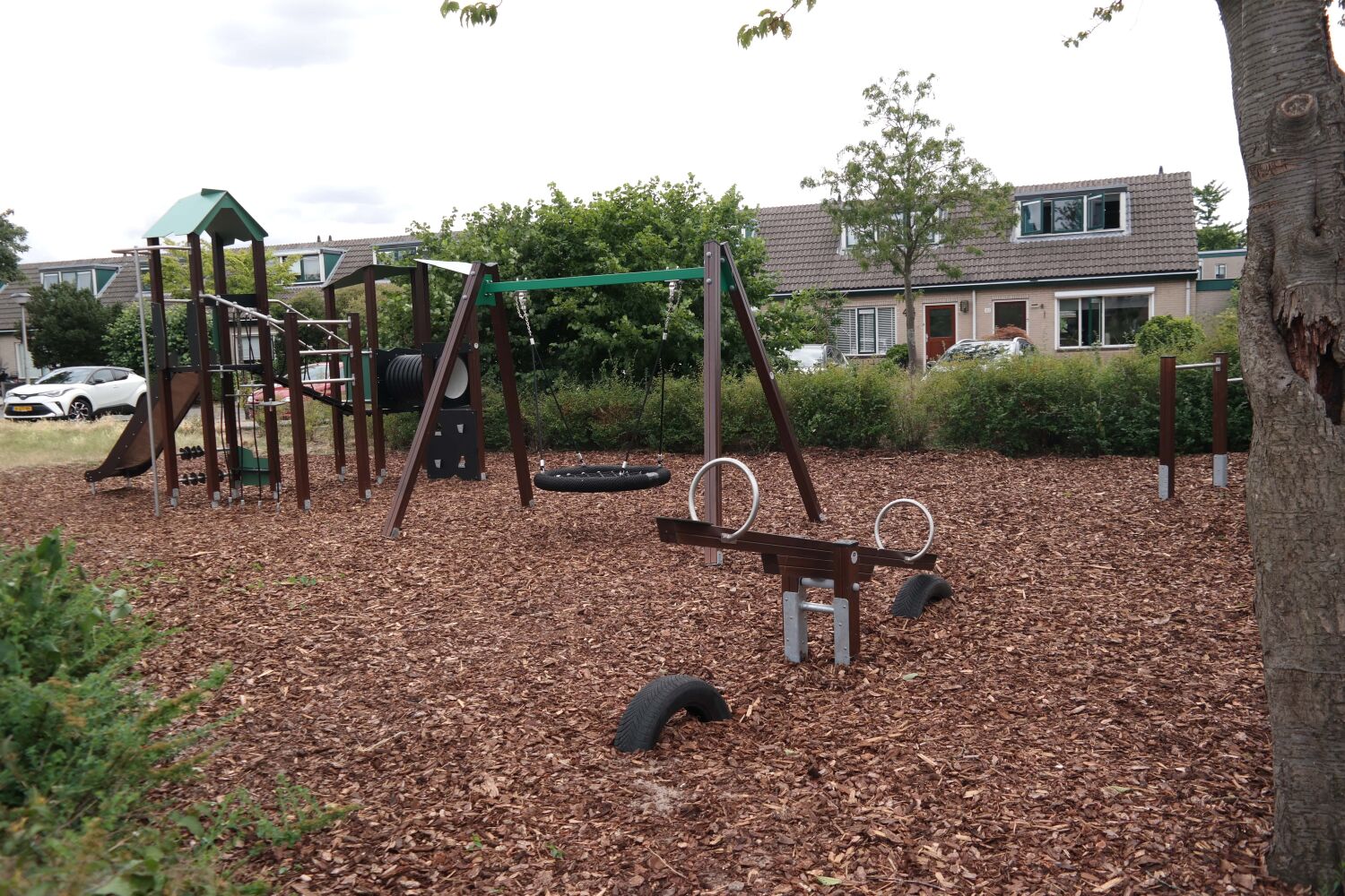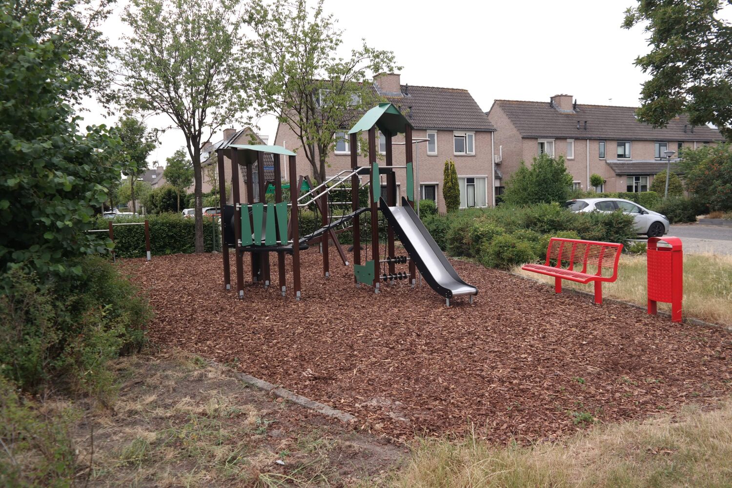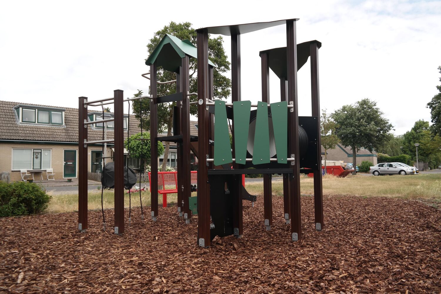 De toestellen die uiteindelijk gekozen zijn voor de speeltuin in Huizen zijn: Speelcombinatie Rosa, Vogelnestschommel specht, Rechte wip en Duikelrek Tumble. Alle speeltoestellen hebben een houtlook met groene elementen en passen op deze manier perfect bij de houtsnipper ondergrond en de bomen die in de wijk aanwezig zijn.