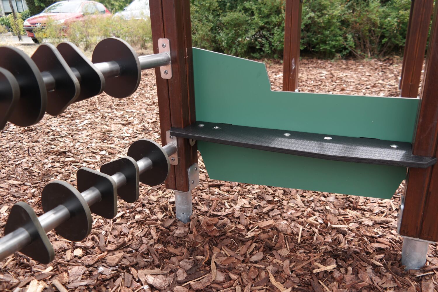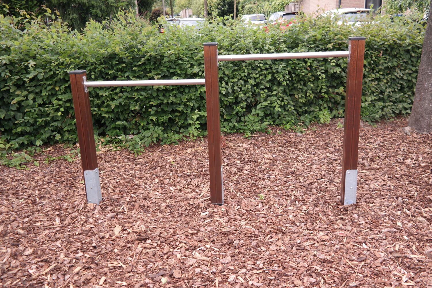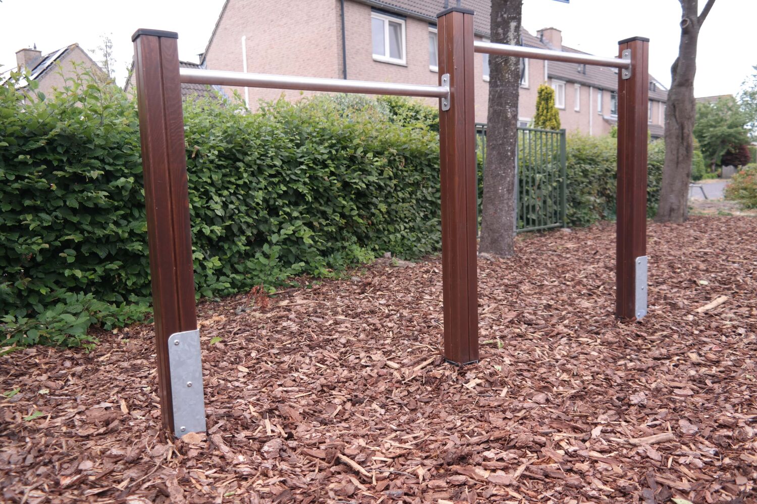 De toestellen die uiteindelijk gekozen zijn voor de speeltuin in Huizen zijn: Speelcombinatie Rosa, Vogelnestschommel specht, Rechte wip en Duikelrek Tumble. Alle speeltoestellen hebben een houtlook met groene elementen en passen op deze manier perfect bij de houtsnipper ondergrond en de bomen die in de wijk aanwezig zijn.