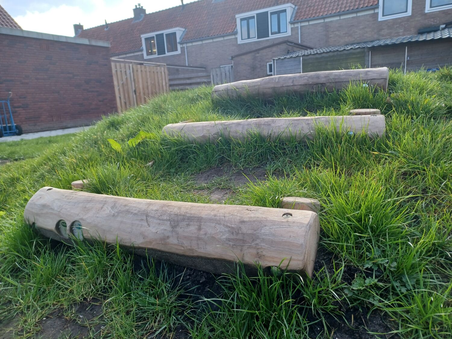 Het was aan ons om een plan te maken wat betreft de indeling van de speeltuin op het gebied van speeltoestellen en ondergronden. Aangezien de gemeente voor een natuurlijke look wilde gaan, kwamen we al snel op Robinia speeltoestellen uit. Deze toestellen hebben namelijk de meest natuurlijke uitstraling. We hebben direct gekozen voor een uitgebreide selectie aan speeltoestellen die ieder een eigen doelgroep aanspreken. Zo is er voor kinderen van zowel jonge leeftijd als oudere leeftijd genoeg uitdaging te vinden!