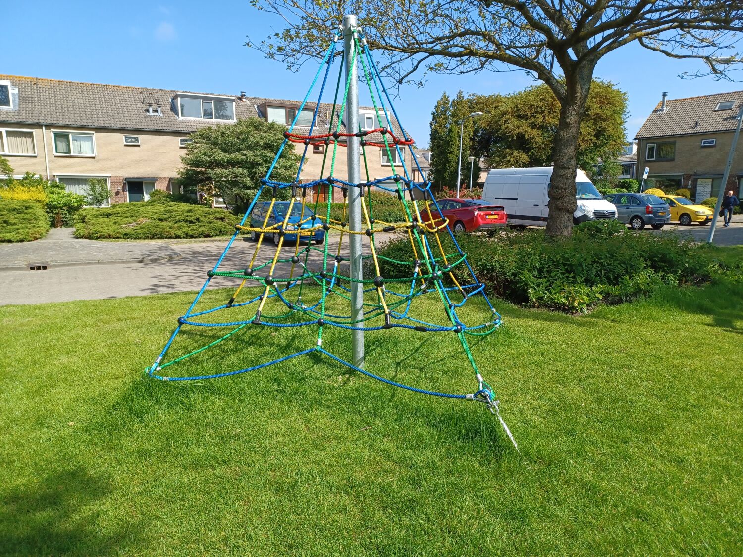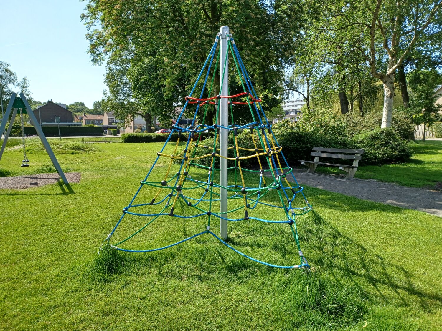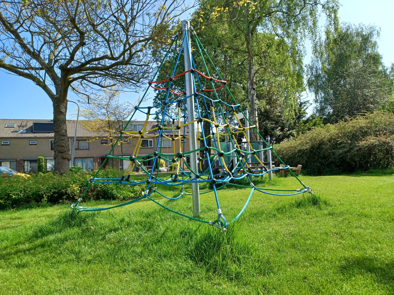 Ook is er een klimpiramide geplaatst en een boombank. Deze toestellen zijn geplaatst op een ondergrond van gras, aangezien deze grondsoort al aanwezig was op de speelplek.