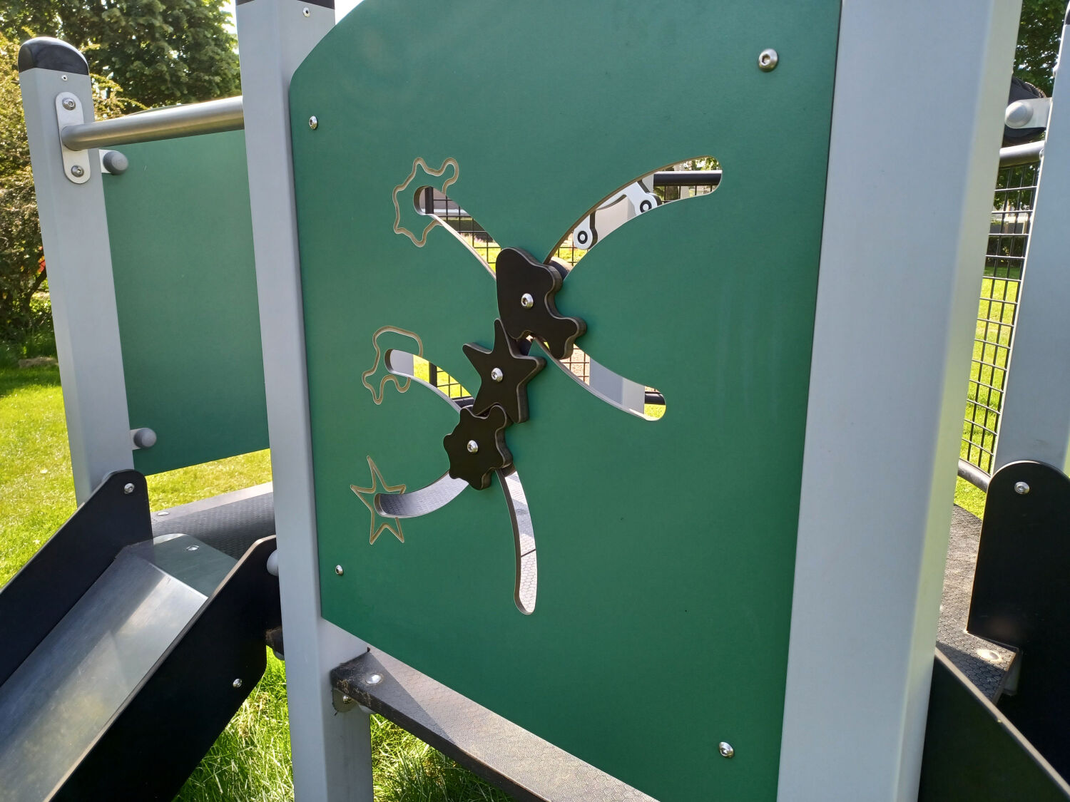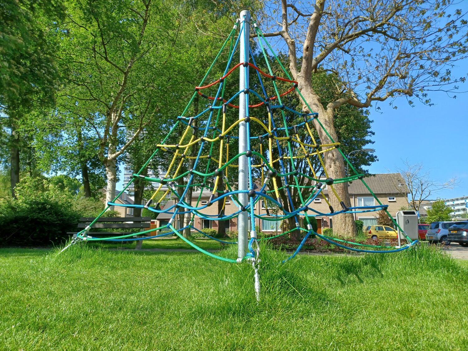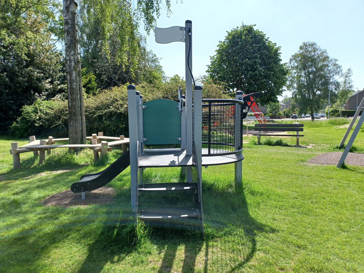 Ook is er een klimpiramide geplaatst en een boombank. Deze toestellen zijn geplaatst op een ondergrond van gras, aangezien deze grondsoort al aanwezig was op de speelplek.