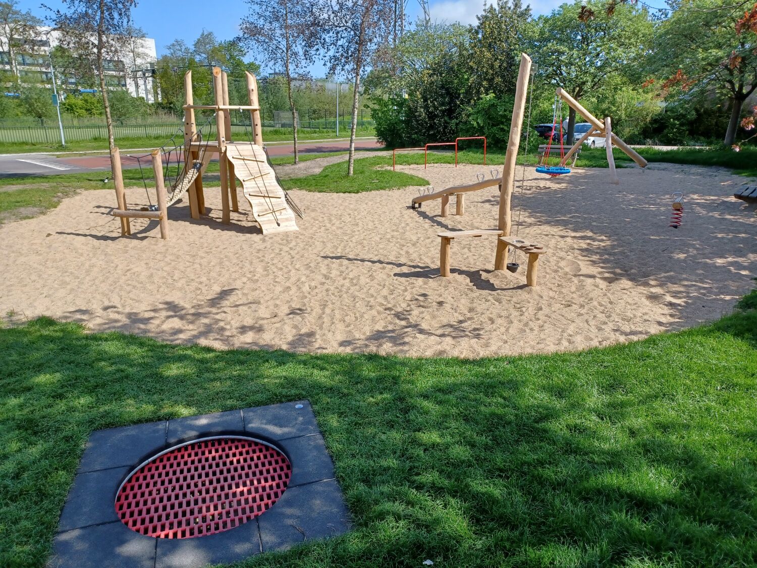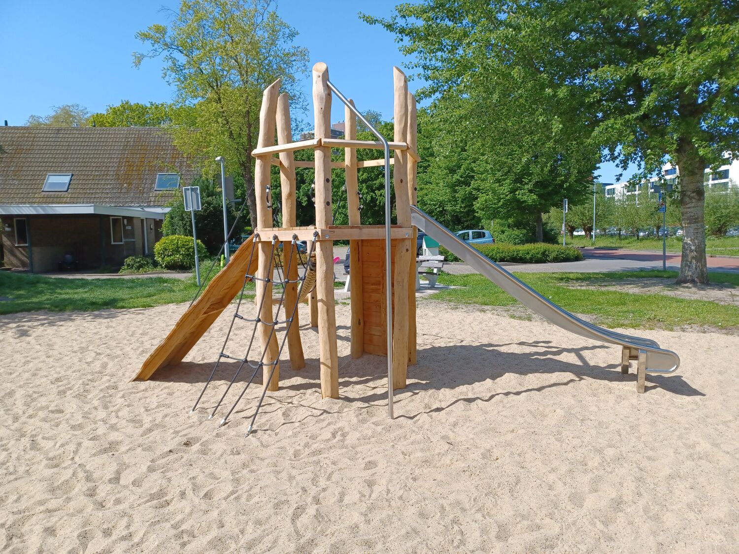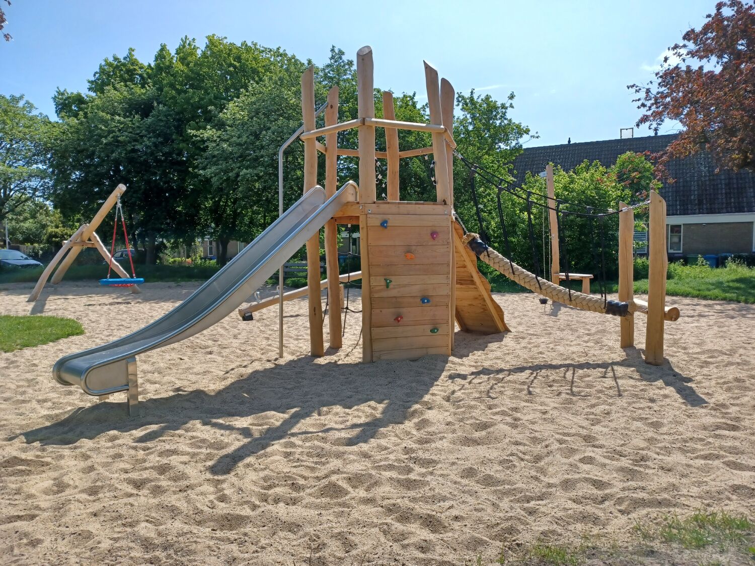 Waar de speeltuin eerst bestond uit 3 speeltoestellen, bestaat deze nu uit 7 speeltoestellen, waarvan het al aanwezige duikelrek er 1 is. In plaats van het bestaande birdsnest is nu Vogelnestschommel Birdsnest geplaatst. Een Robinia variant van het stalen speeltoestel.