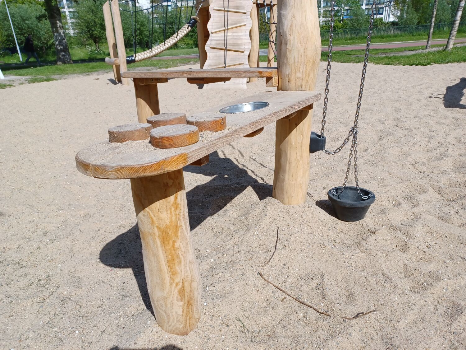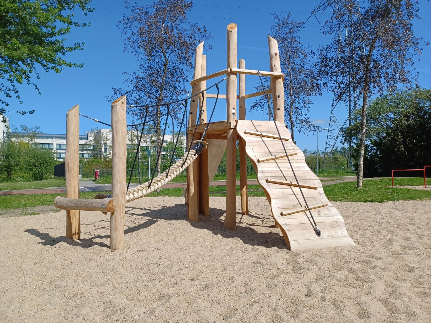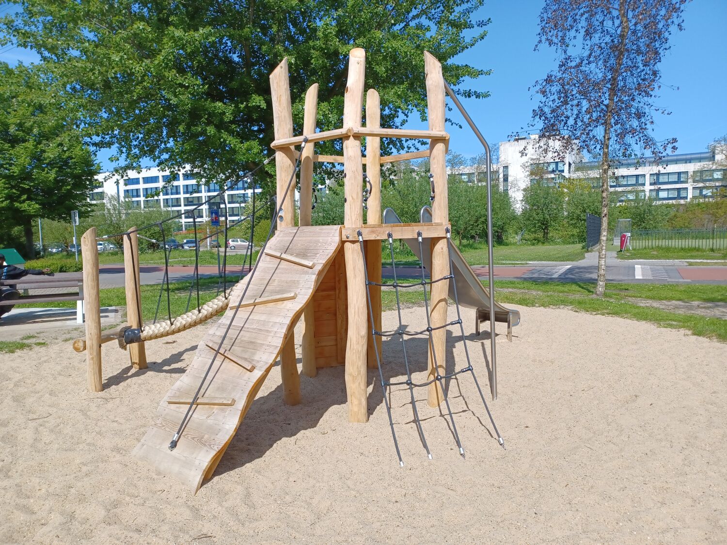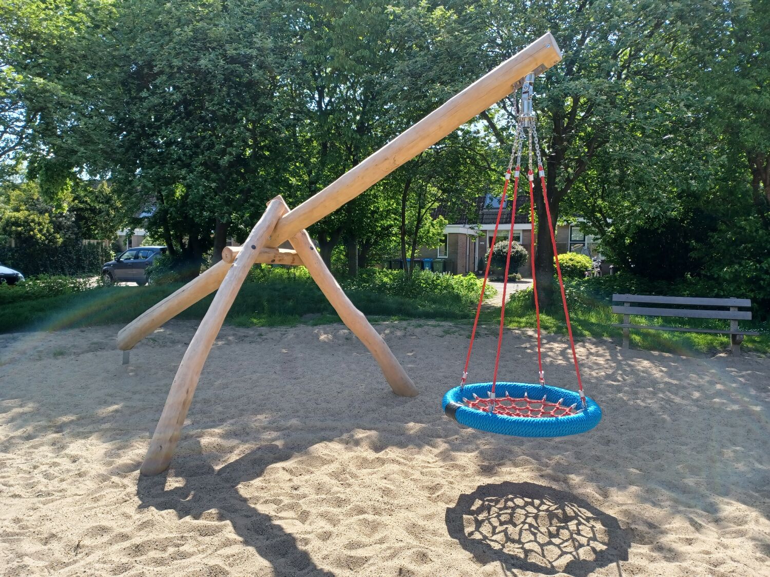 Waar de speeltuin eerst bestond uit 3 speeltoestellen, bestaat deze nu uit 7 speeltoestellen, waarvan het al aanwezige duikelrek er 1 is. In plaats van het bestaande birdsnest is nu Vogelnestschommel Birdsnest geplaatst. Een Robinia variant van het stalen speeltoestel.