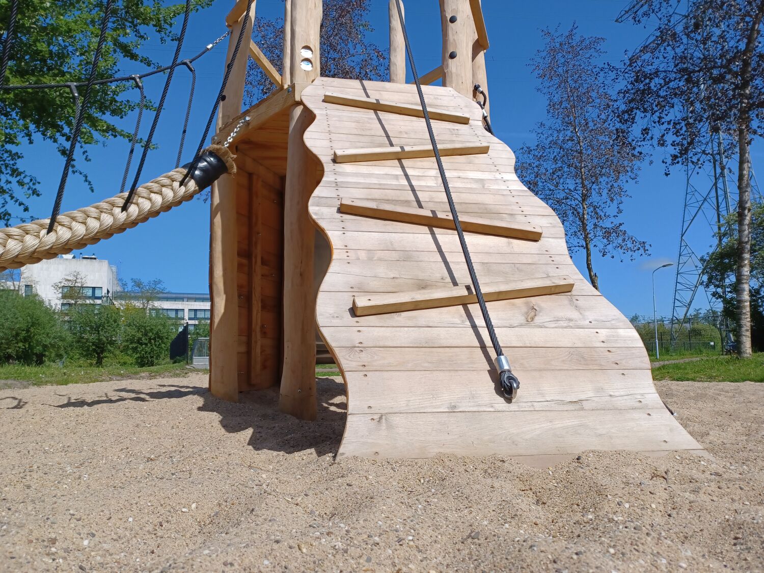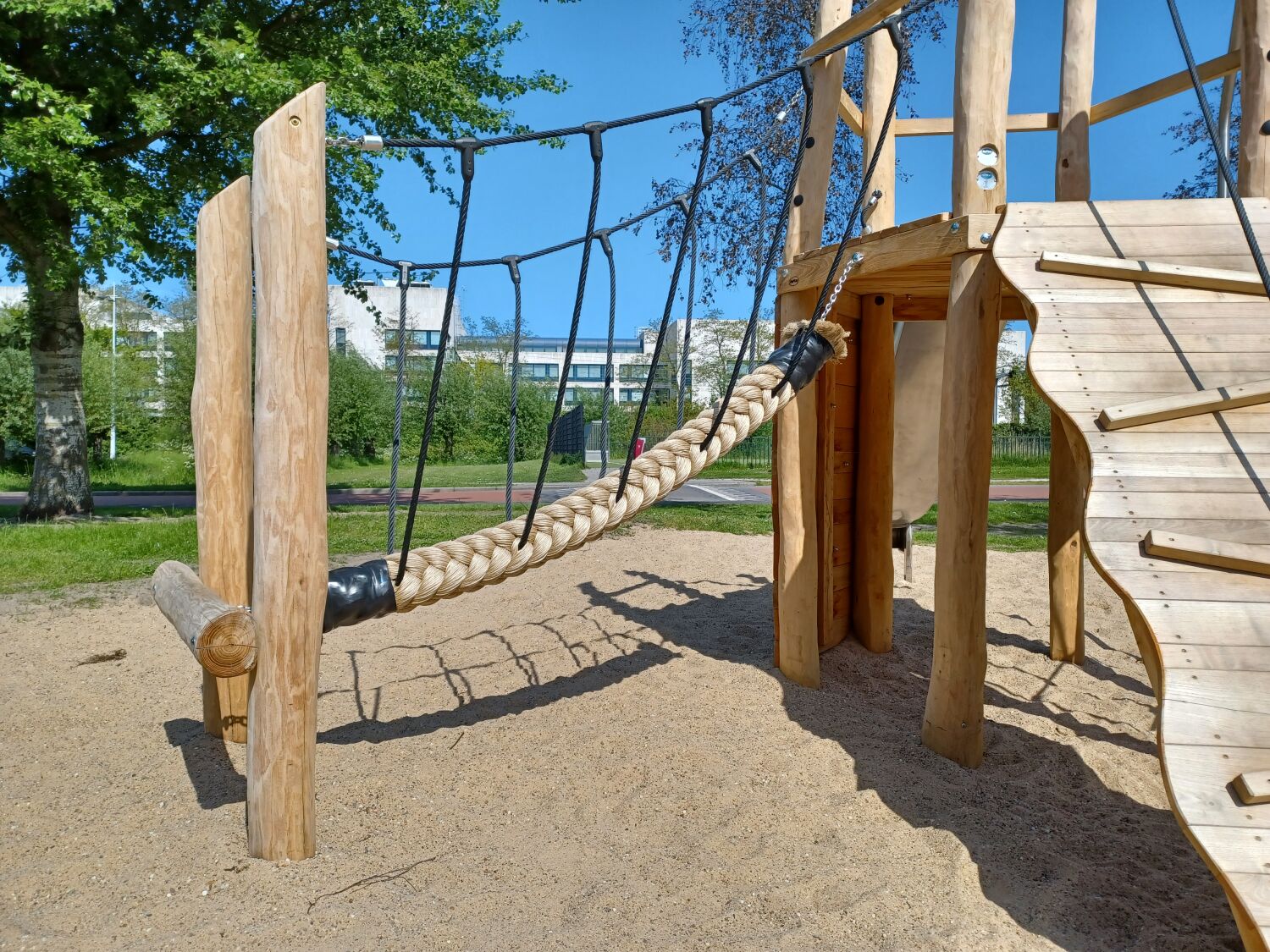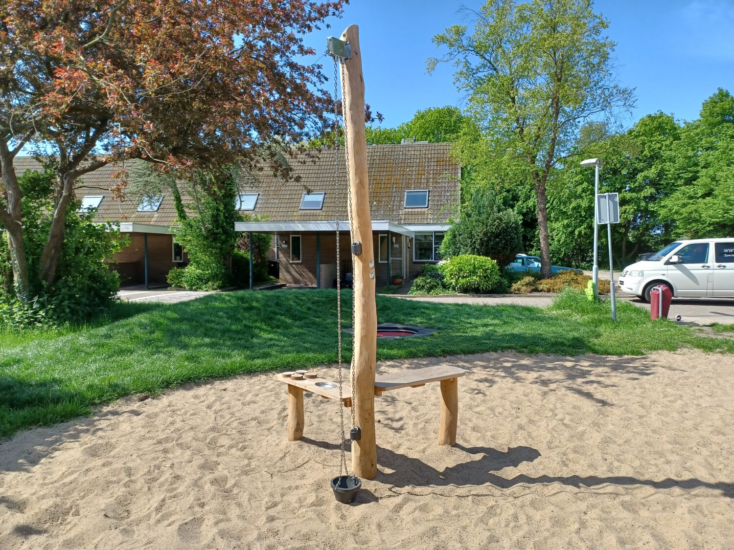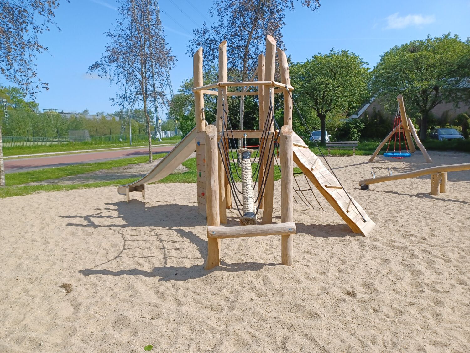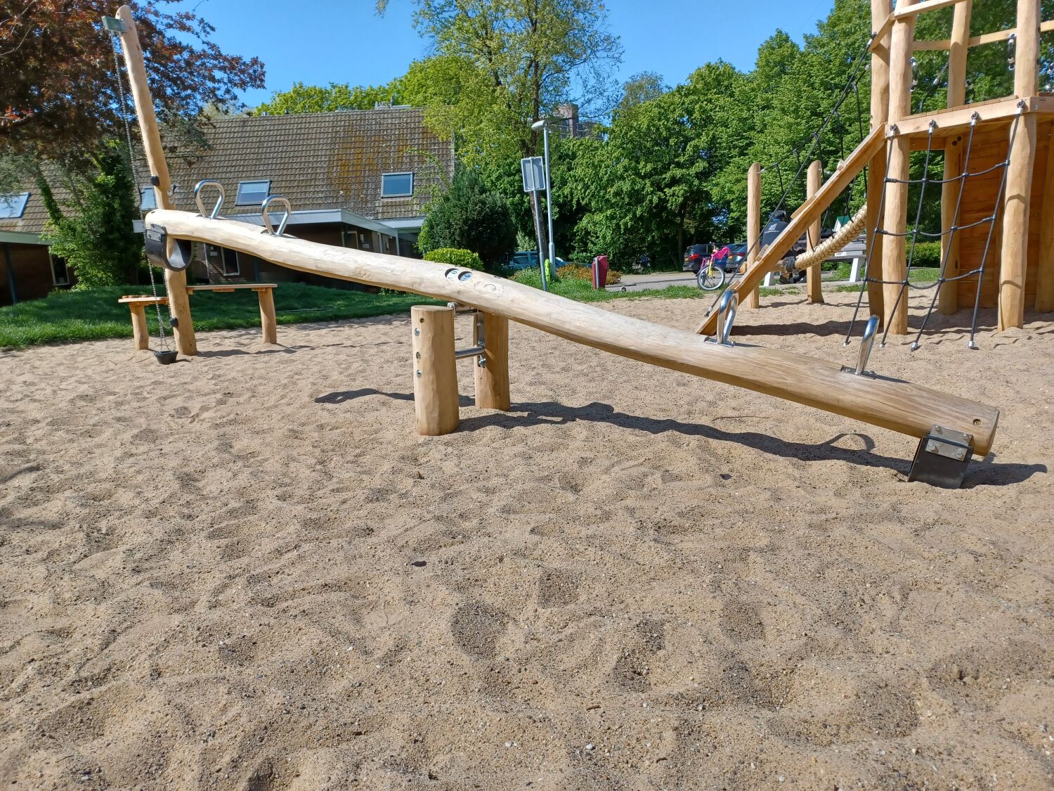 De overige speeltoestellen die geplaatst zijn, zijn ook allen van Robinia hout gemaakt. Zo vormt de speelplek één natuurlijk geheel in de wijk. De geplaatste speeltoestellen zijn een onze 4-zits wip, Speelcombinatie Lijsterbes, Veertoestel Kiekeboe en een kleine trampoline.